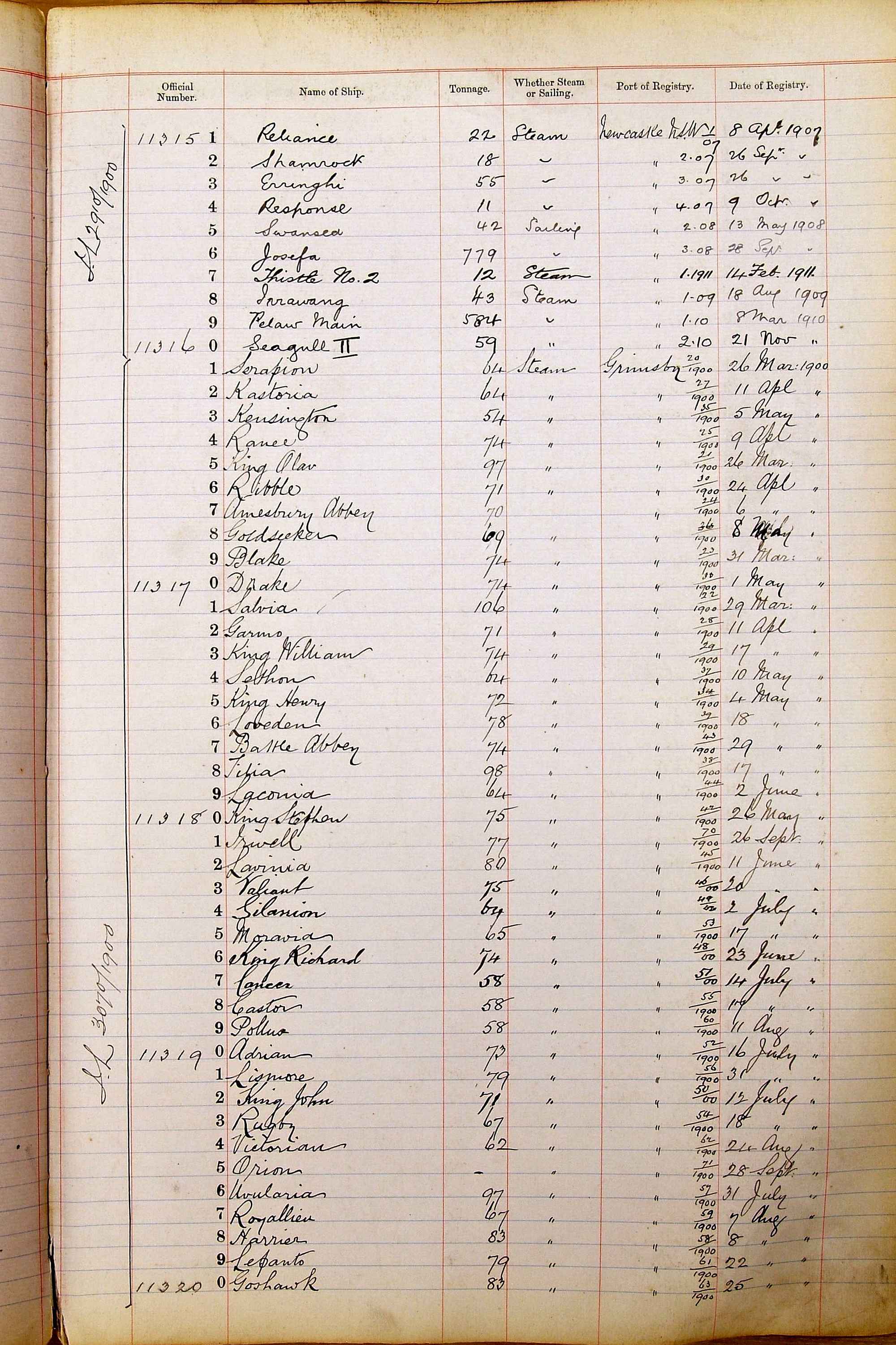 When the system of official numbers began on 16 April 1855, the British Ports of Registry were each allocated batches of official numbers. For official numbers up to 22200 you can see this allocation as a pencil note at the top of the page where the allocation began. A summary of the first allocation is shown here: Initial allocation of official numbers