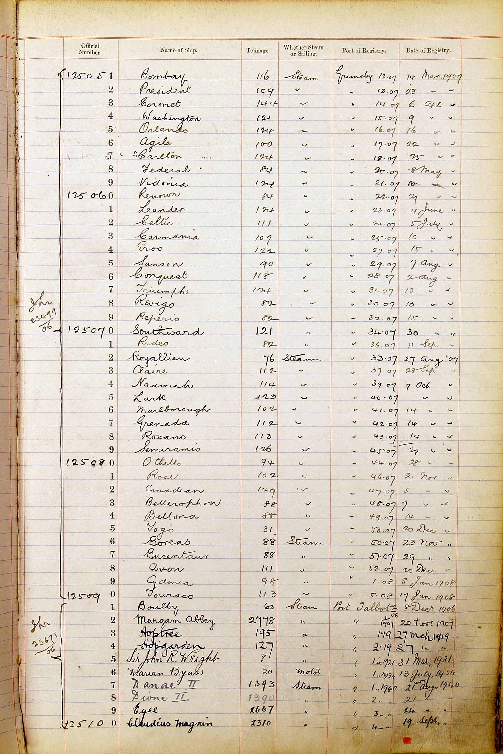 When the system of official numbers began on 16 April 1855, the British Ports of Registry were each allocated batches of official numbers. For official numbers up to 22200 you can see this allocation as a pencil note at the top of the page where the allocation began. A summary of the first allocation is shown here: Initial allocation of official numbers