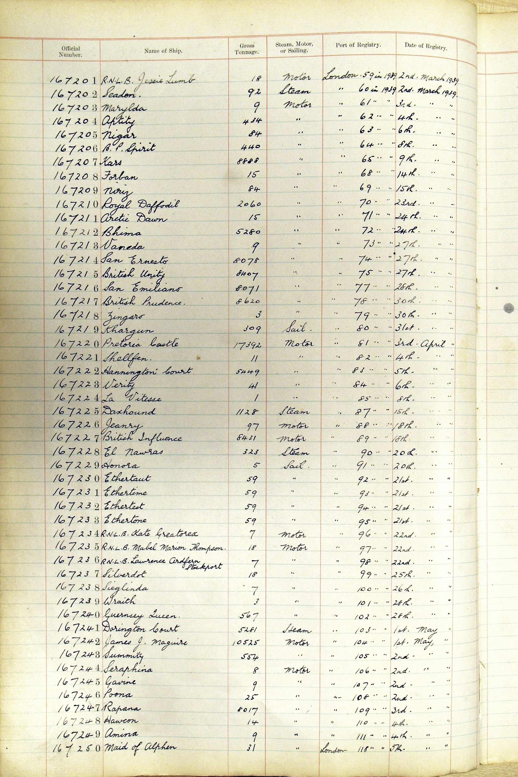 When the system of official numbers began on 16 April 1855, the British Ports of Registry were each allocated batches of official numbers. For official numbers up to 22200 you can see this allocation as a pencil note at the top of the page where the allocation began. A summary of the first allocation is shown here: Initial allocation of official numbers