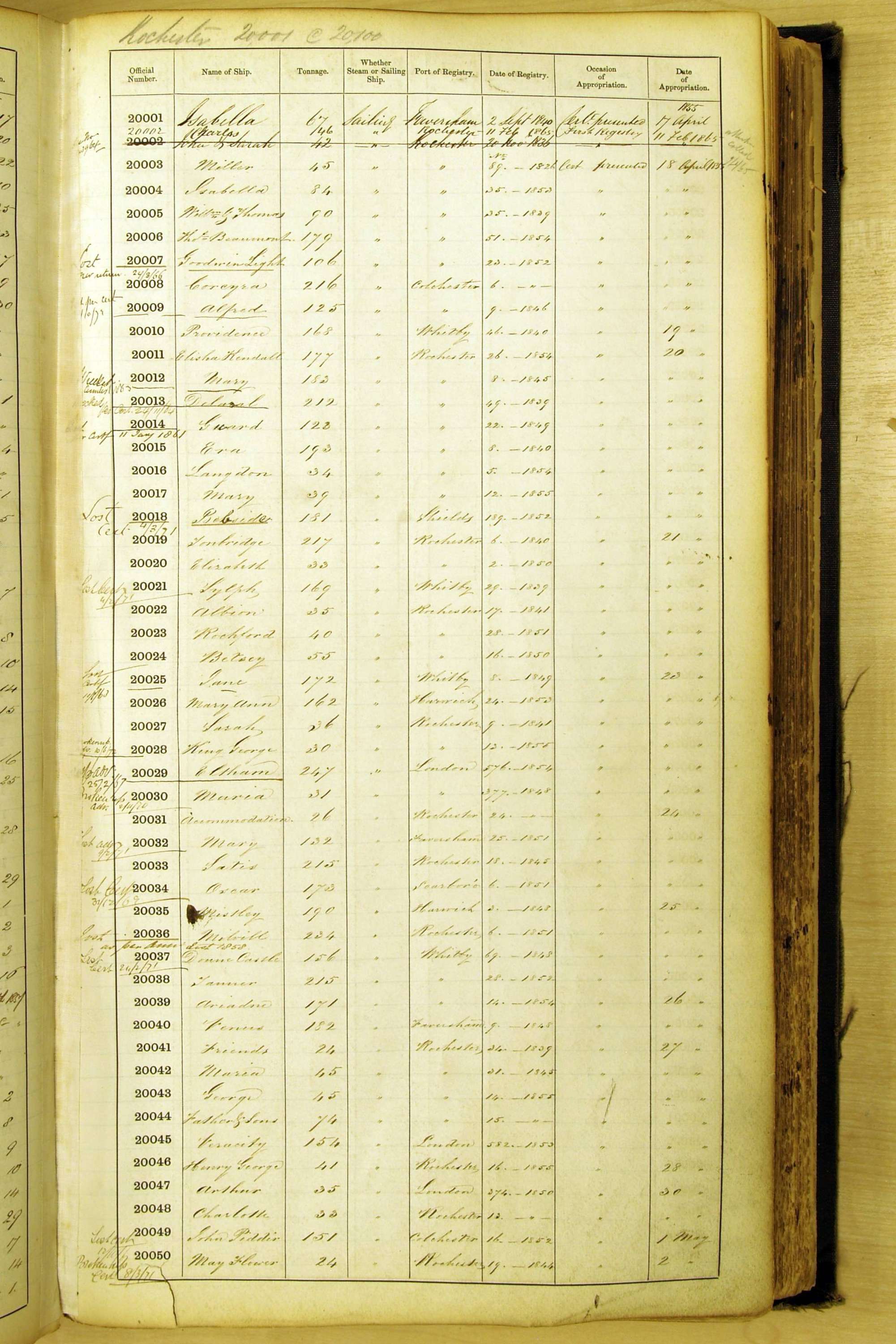 When the system of official numbers began on 16 April 1855, the British Ports of Registry were each allocated batches of official numbers. For official numbers up to 22200 you can see this allocation as a pencil note at the top of the page where the allocation began. A summary of the first allocation is shown here: Initial allocation of official numbers