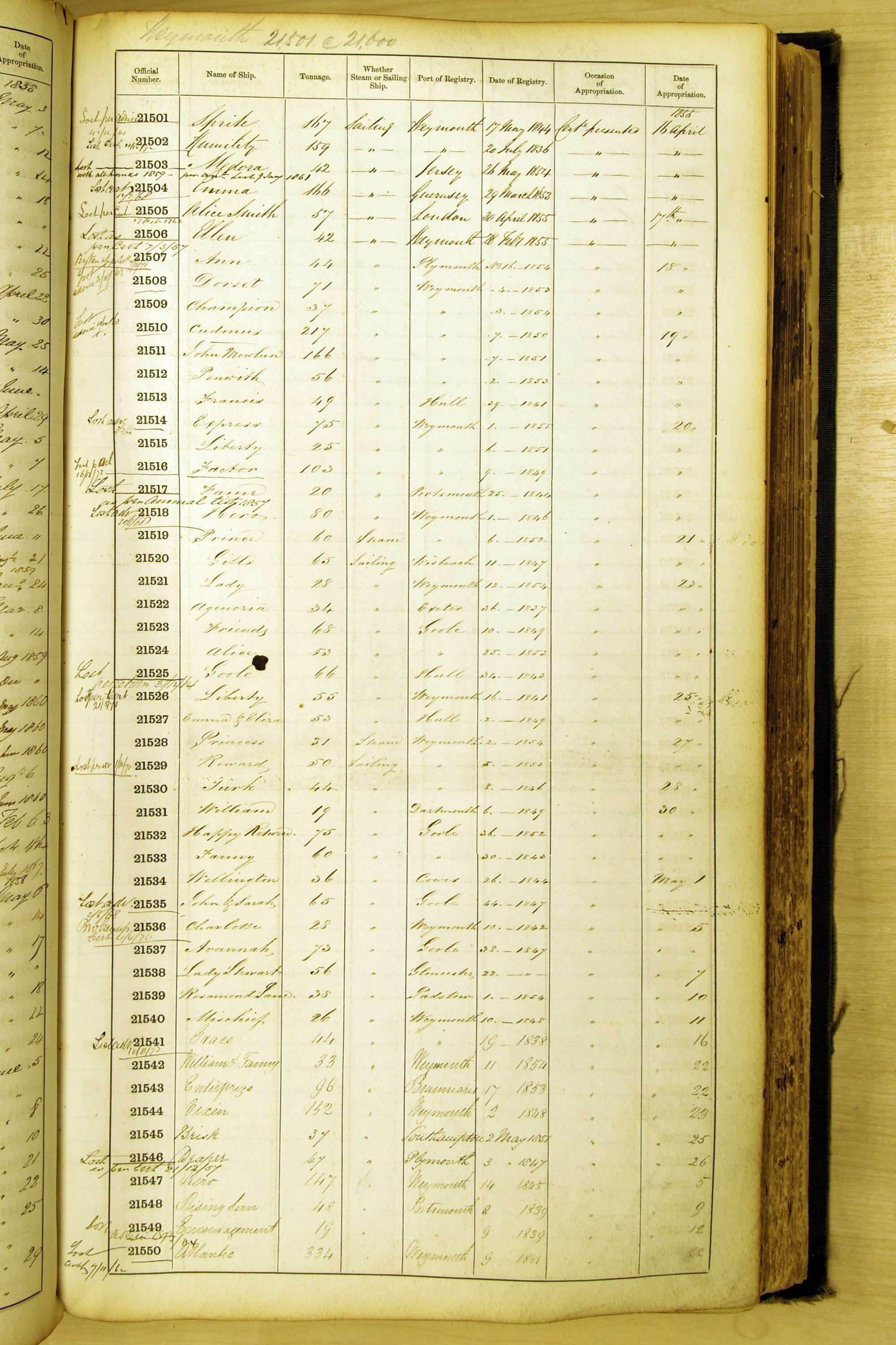 Bear in mind that the ships names in the Appropriation Books are not the definitive name or spelling of the name, even though these are the central records for the whole system. As you can see, the entries are hand-written and derived from hand-written returns made by the various ports, themselves based on the hand-written shipping registers, based on what the port officials thought the person registering the ship was saying or had hand-written down.