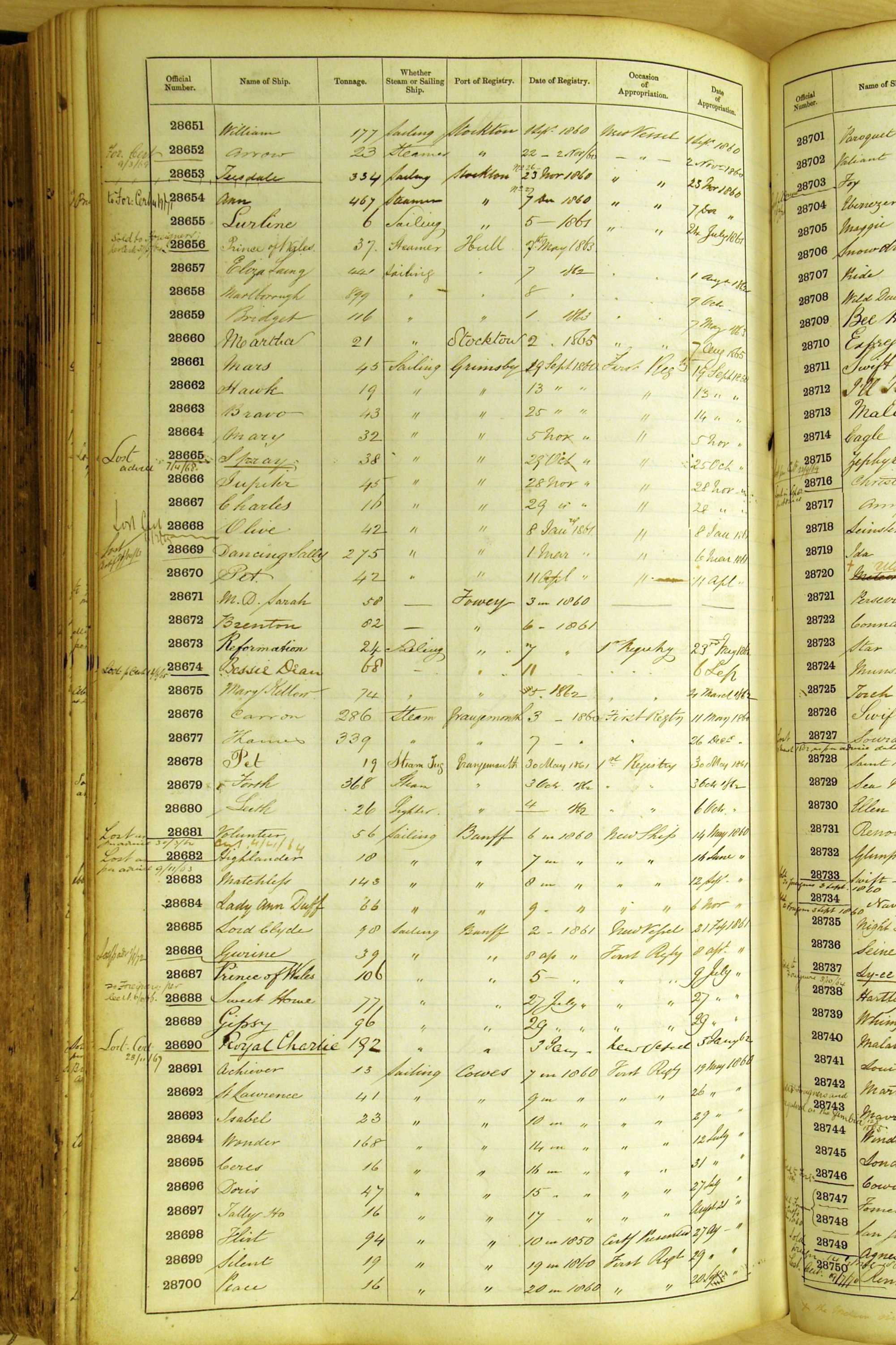 The images were made by CLIP from the original volumes held at the Registry of Shipping and Seamen in Cardiff and we would like to thank the staff for their helpfulness in providing us with access to the volumes.