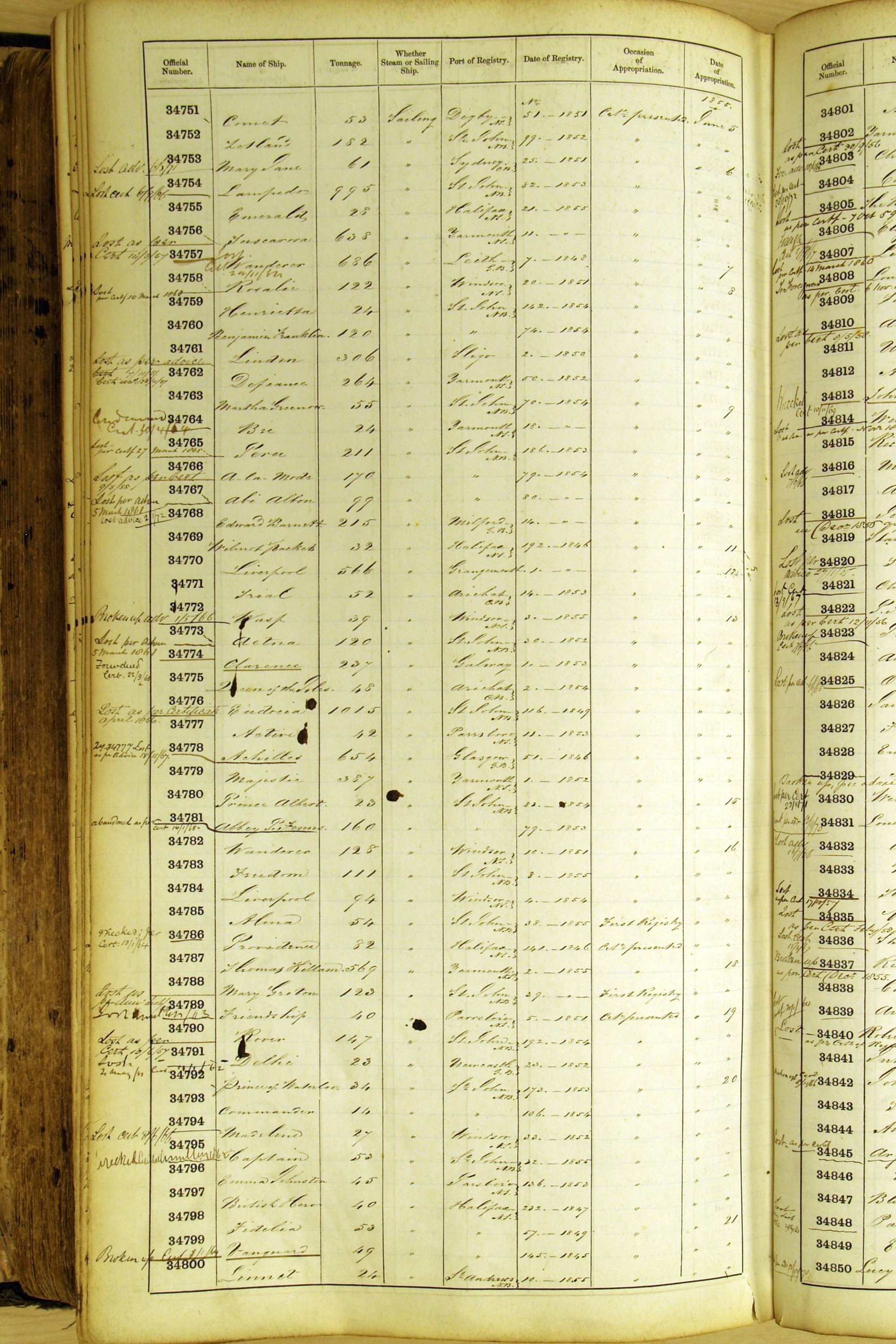 Bear in mind that the ships names in the Appropriation Books are not the definitive name or spelling of the name, even though these are the central records for the whole system. As you can see, the entries are hand-written and derived from hand-written returns made by the various ports, themselves based on the hand-written shipping registers, based on what the port officials thought the person registering the ship was saying or had hand-written down.
