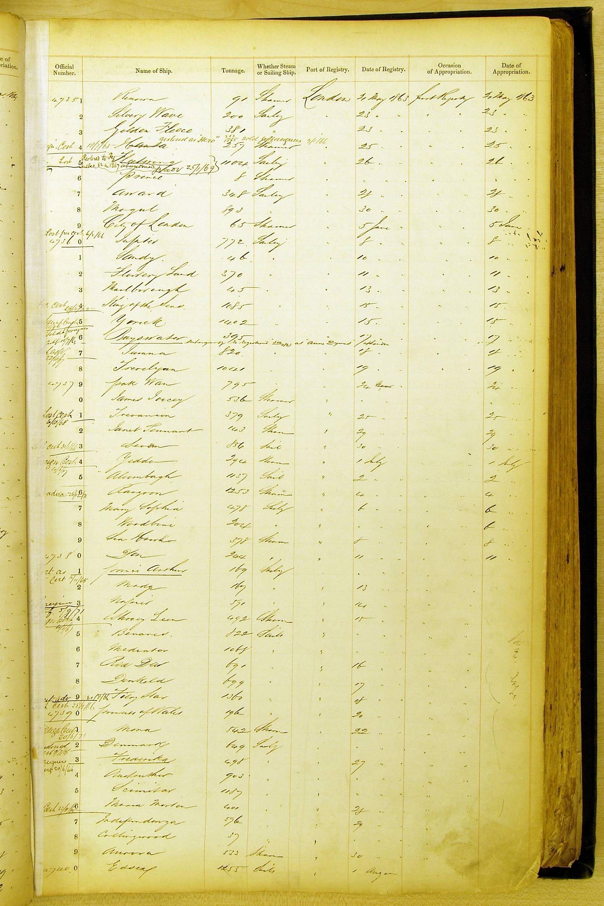 Bear in mind that the ships names in the Appropriation Books are not the definitive name or spelling of the name, even though these are the central records for the whole system. As you can see, the entries are hand-written and derived from hand-written returns made by the various ports, themselves based on the hand-written shipping registers, based on what the port officials thought the person registering the ship was saying or had hand-written down.