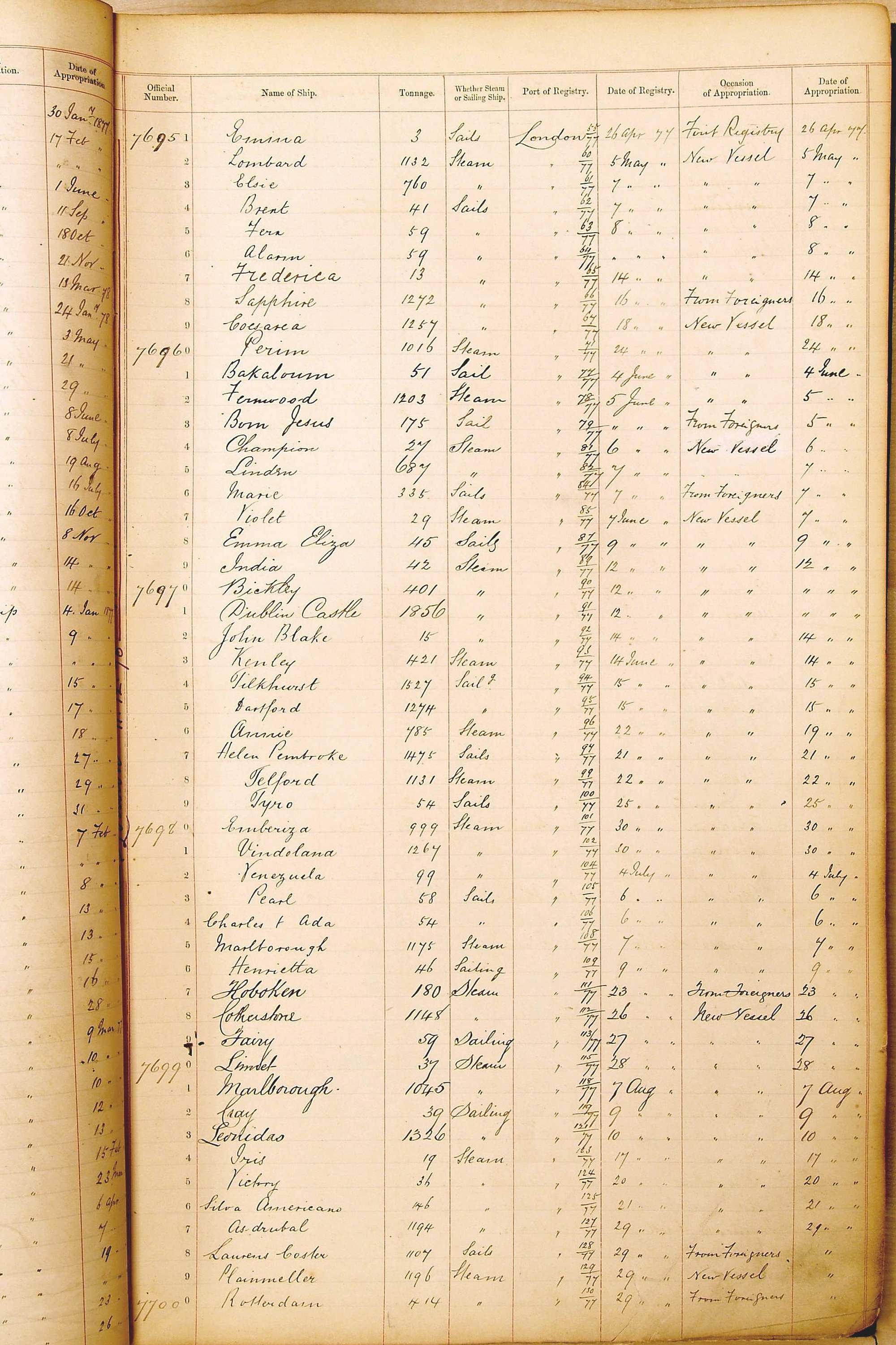 The images were made by CLIP from the original volumes held at the Registry of Shipping and Seamen in Cardiff and we would like to thank the staff for their helpfulness in providing us with access to the volumes.