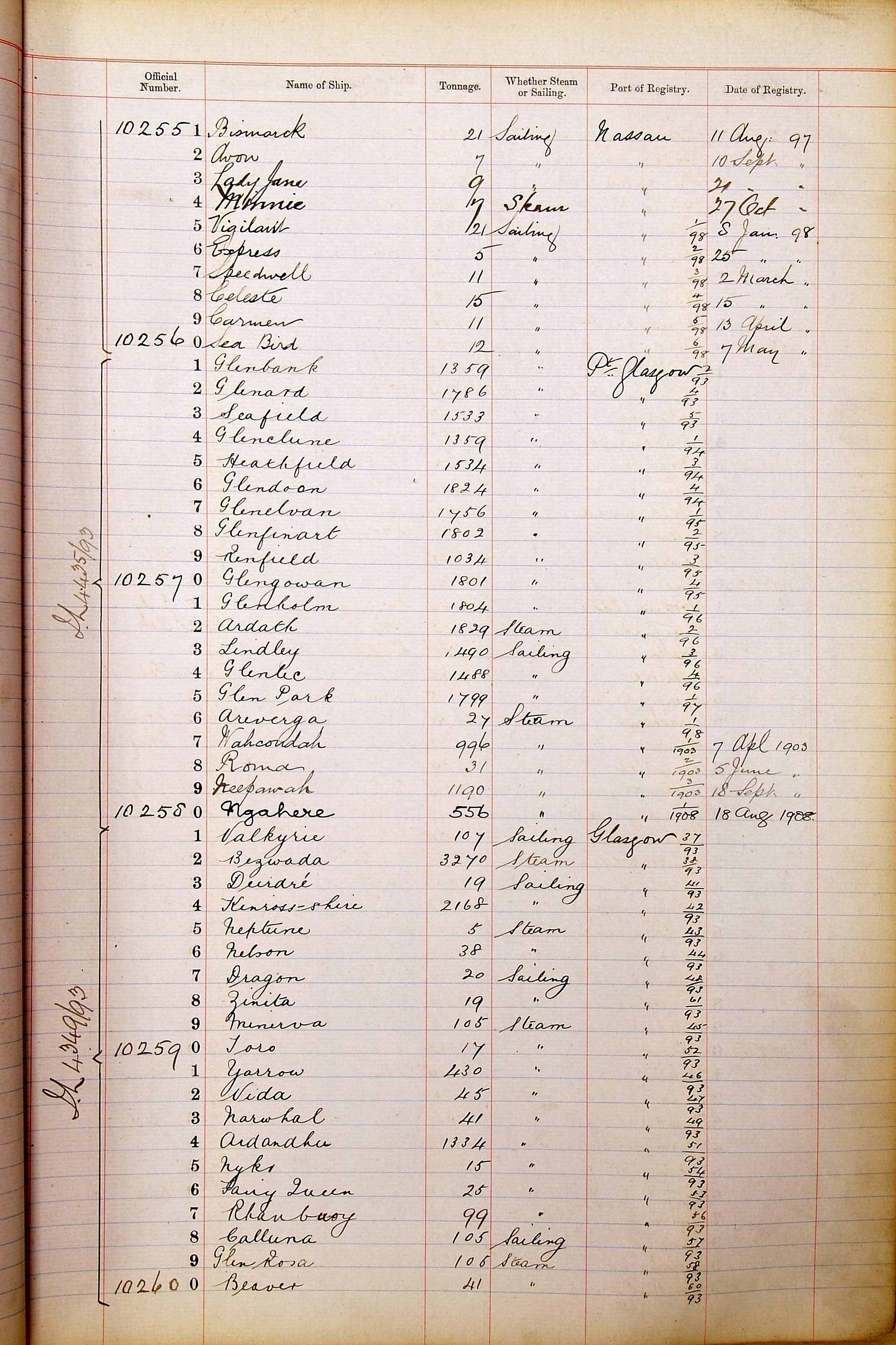 The ship names recorded are those that the ships carried at the time that their official numbers were allocated - changes are sometimes noted, but the best source for changes of name are the shipping registers for the port, or alternatively the Mercantile Navy List.