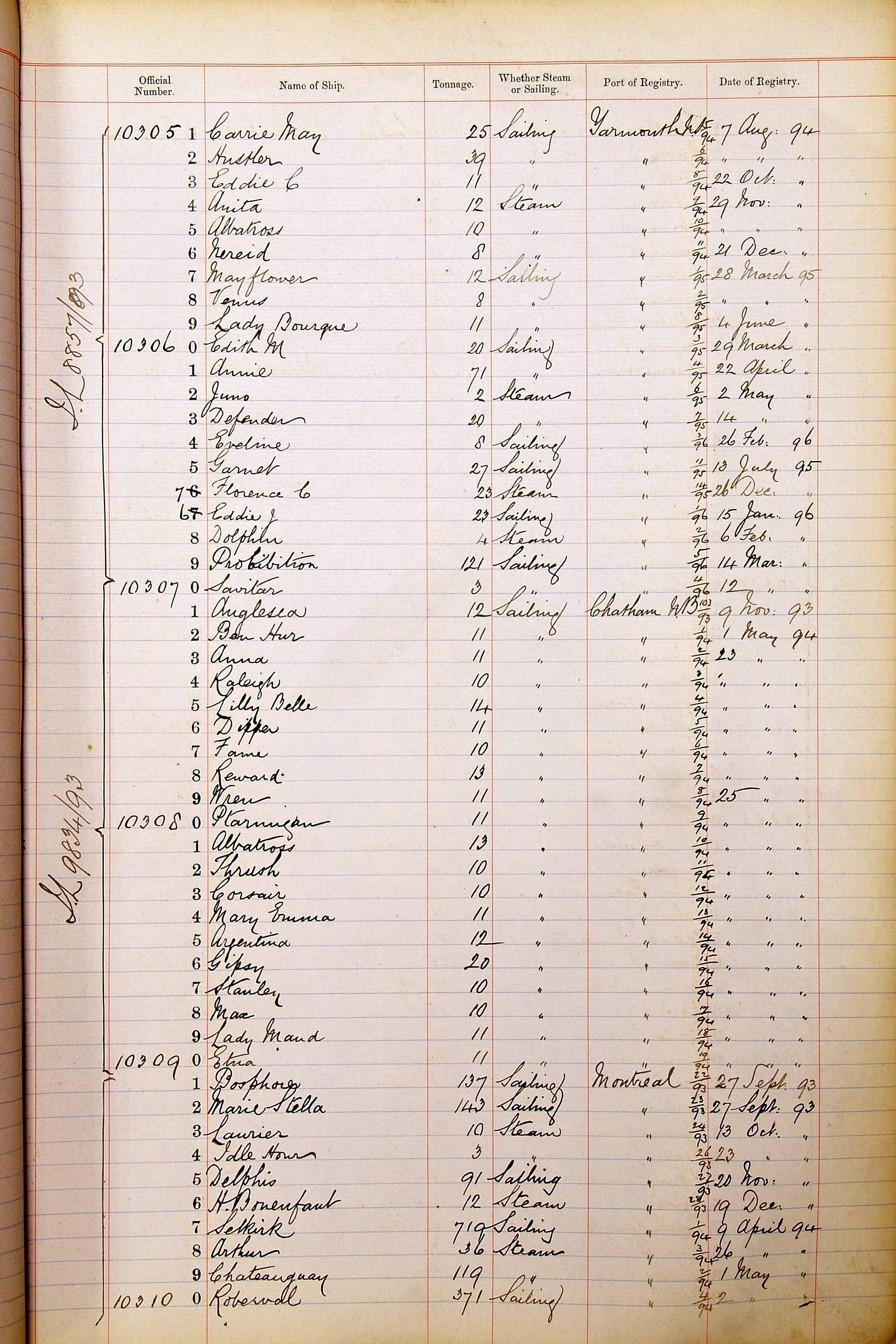 The ship names recorded are those that the ships carried at the time that their official numbers were allocated - changes are sometimes noted, but the best source for changes of name are the shipping registers for the port, or alternatively the Mercantile Navy List.