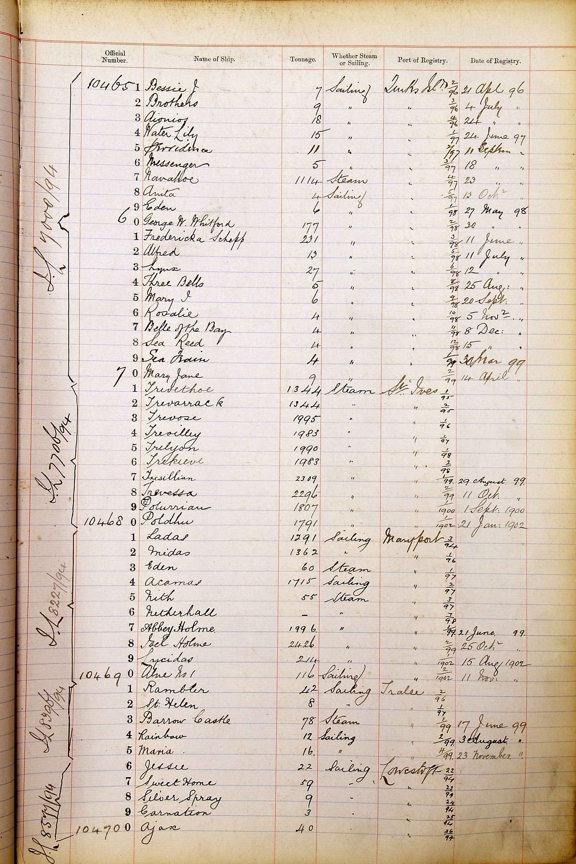 The ship names recorded are those that the ships carried at the time that their official numbers were allocated - changes are sometimes noted, but the best source for changes of name are the shipping registers for the port, or alternatively the Mercantile Navy List.