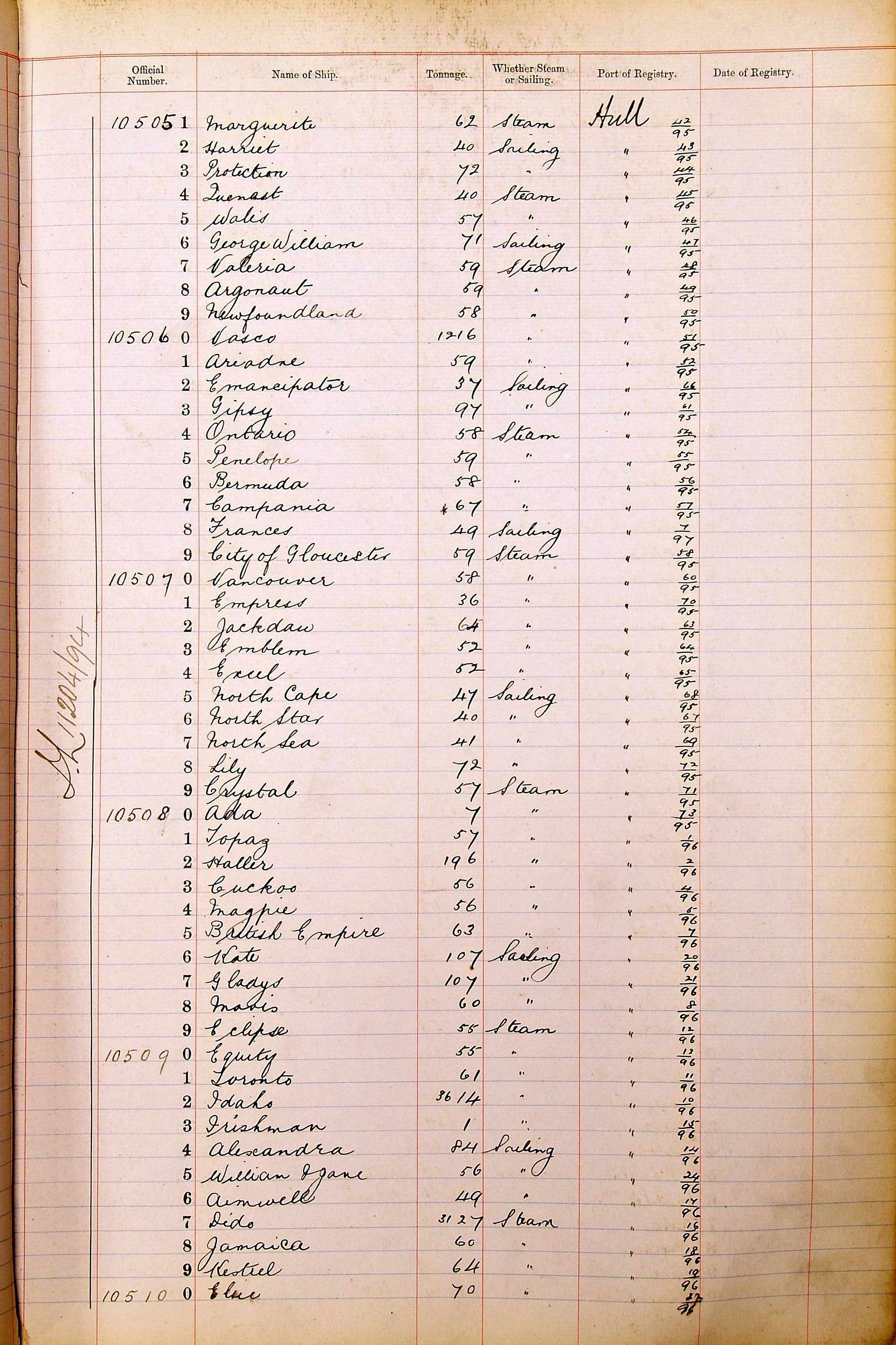 When the system of official numbers began on 16 April 1855, the British Ports of Registry were each allocated batches of official numbers. For official numbers up to 22200 you can see this allocation as a pencil note at the top of the page where the allocation began. A summary of the first allocation is shown here: Initial allocation of official numbers