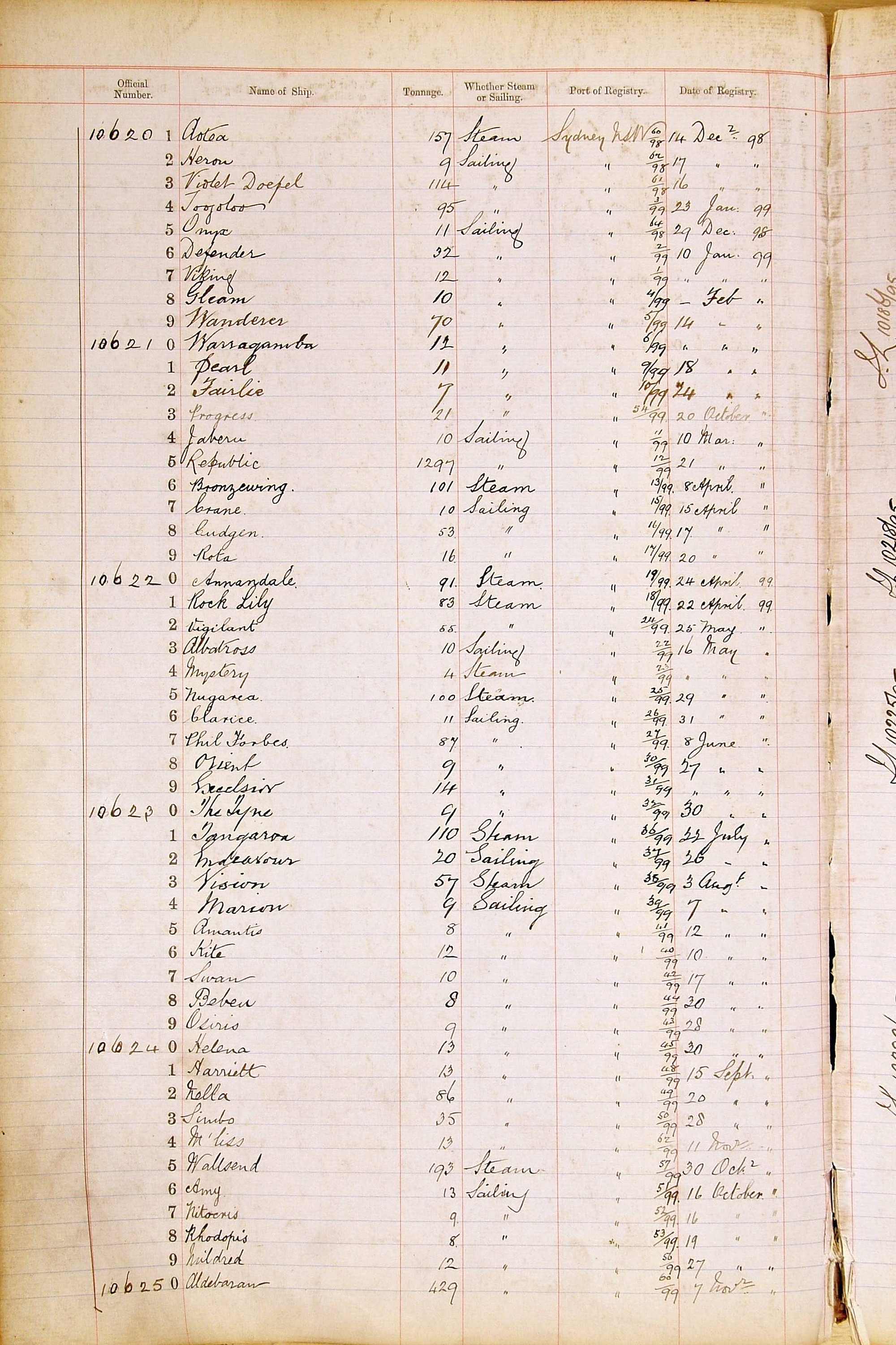 When the system of official numbers began on 16 April 1855, the British Ports of Registry were each allocated batches of official numbers. For official numbers up to 22200 you can see this allocation as a pencil note at the top of the page where the allocation began. A summary of the first allocation is shown here: Initial allocation of official numbers