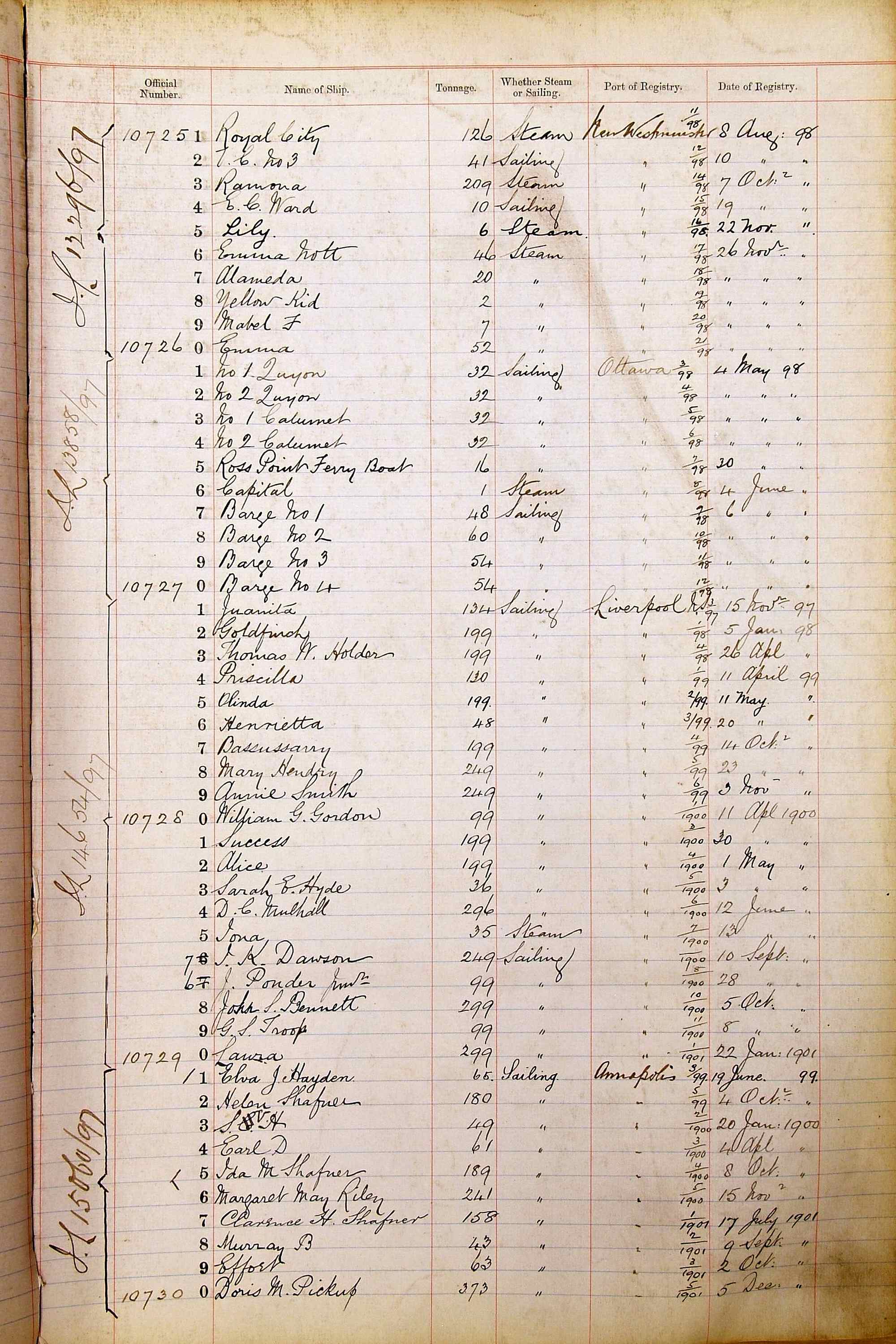The ship names recorded are those that the ships carried at the time that their official numbers were allocated - changes are sometimes noted, but the best source for changes of name are the shipping registers for the port, or alternatively the Mercantile Navy List.