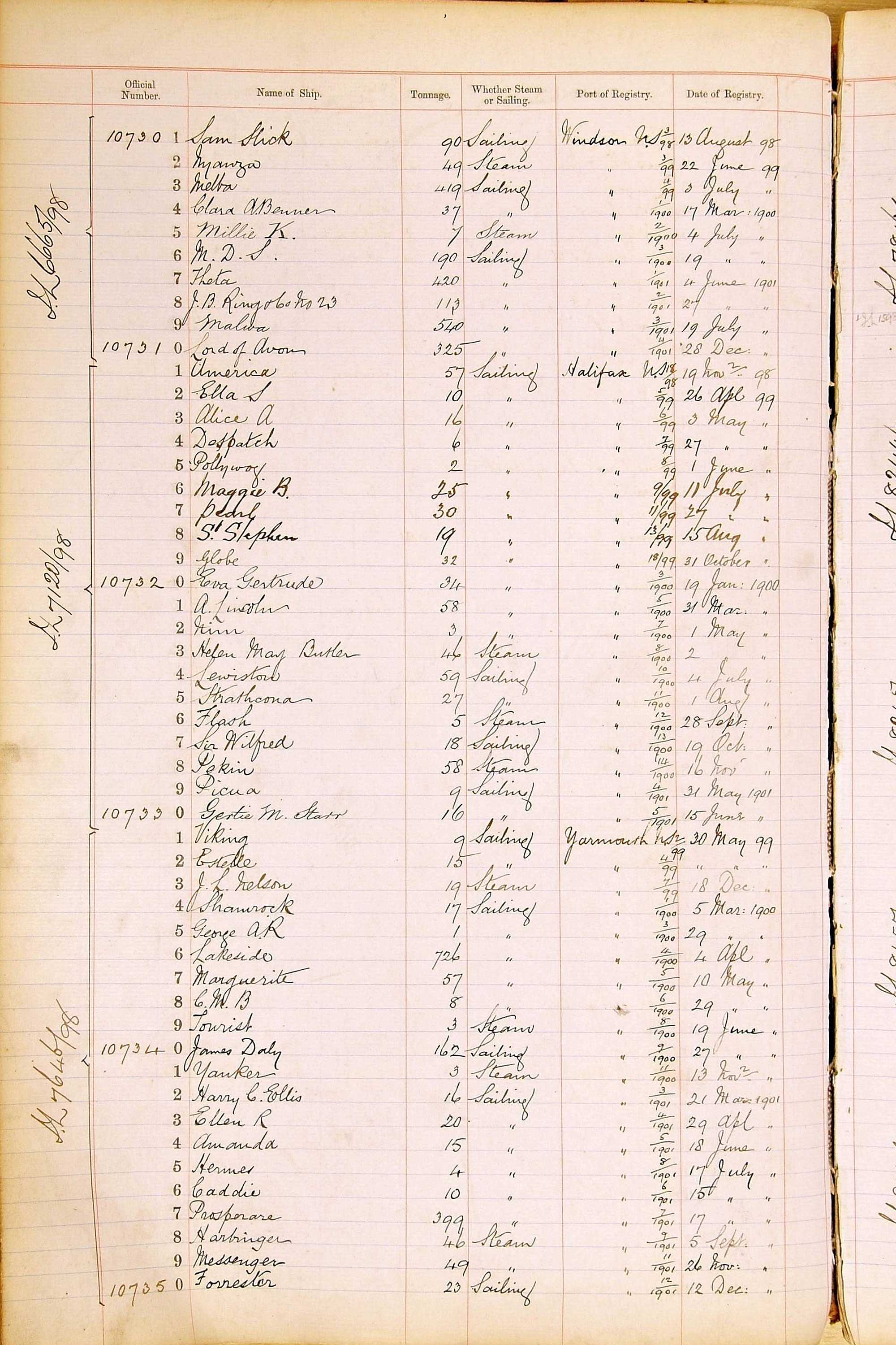 The ship names recorded are those that the ships carried at the time that their official numbers were allocated - changes are sometimes noted, but the best source for changes of name are the shipping registers for the port, or alternatively the Mercantile Navy List.