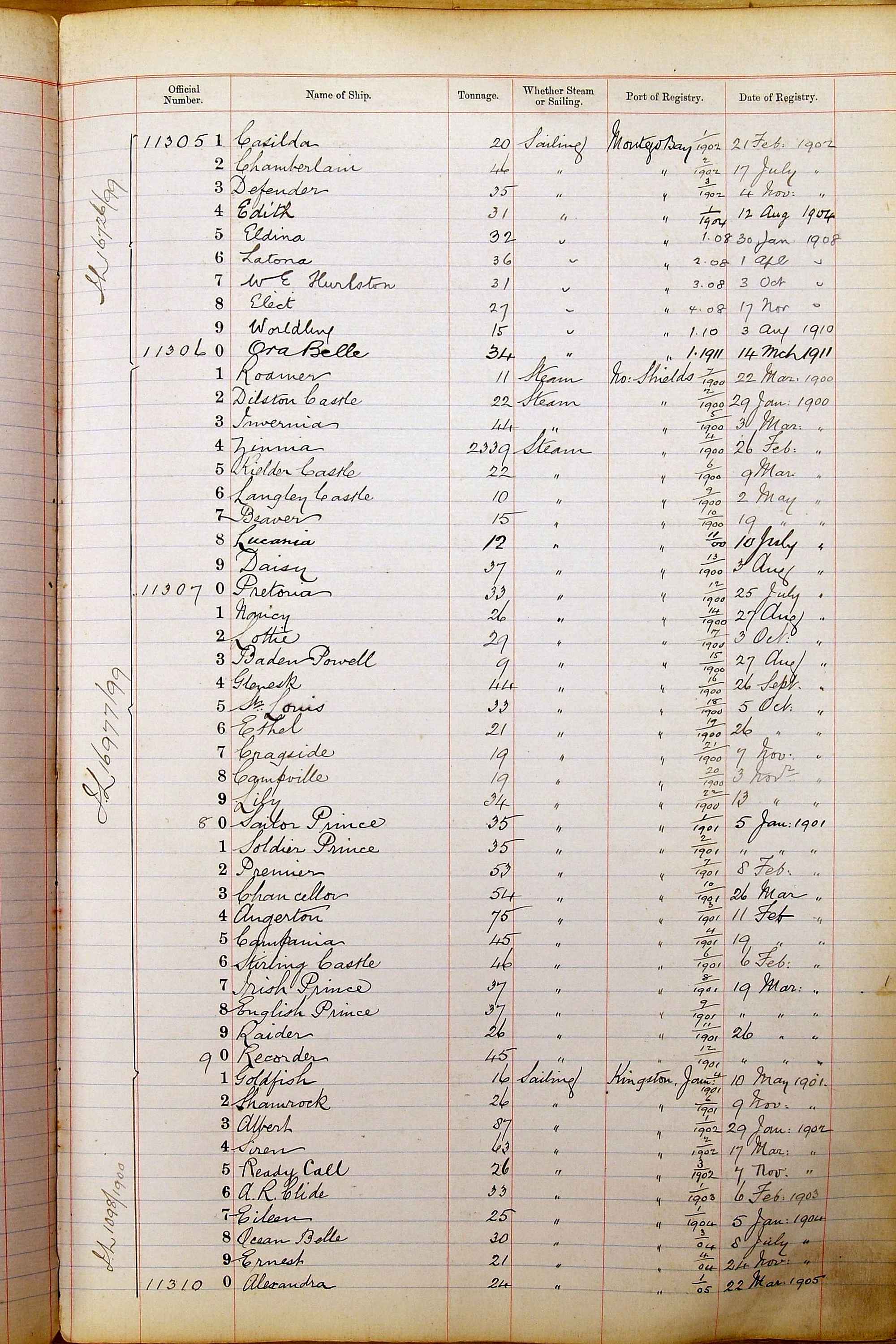 The ship names recorded are those that the ships carried at the time that their official numbers were allocated - changes are sometimes noted, but the best source for changes of name are the shipping registers for the port, or alternatively the Mercantile Navy List.
