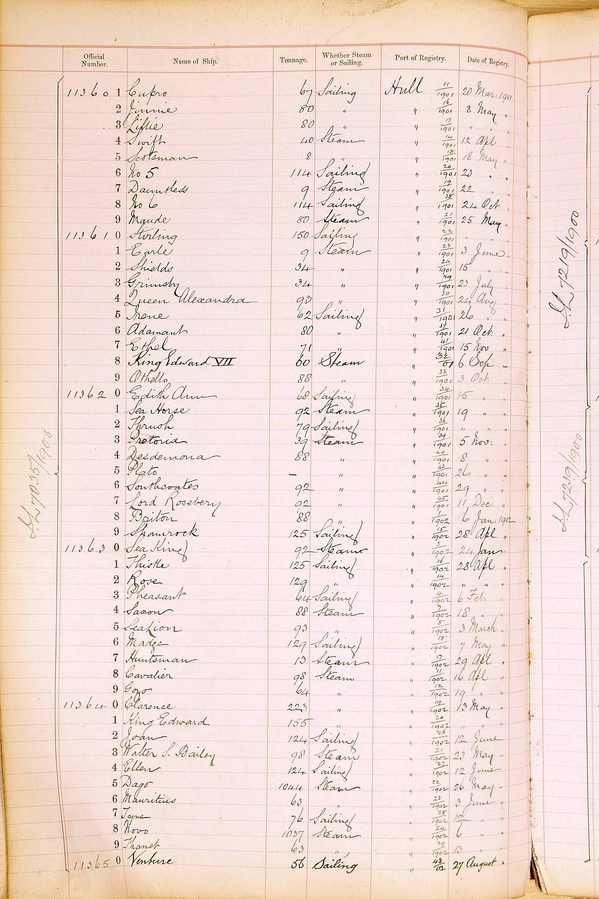 When the system of official numbers began on 16 April 1855, the British Ports of Registry were each allocated batches of official numbers. For official numbers up to 22200 you can see this allocation as a pencil note at the top of the page where the allocation began. A summary of the first allocation is shown here: Initial allocation of official numbers