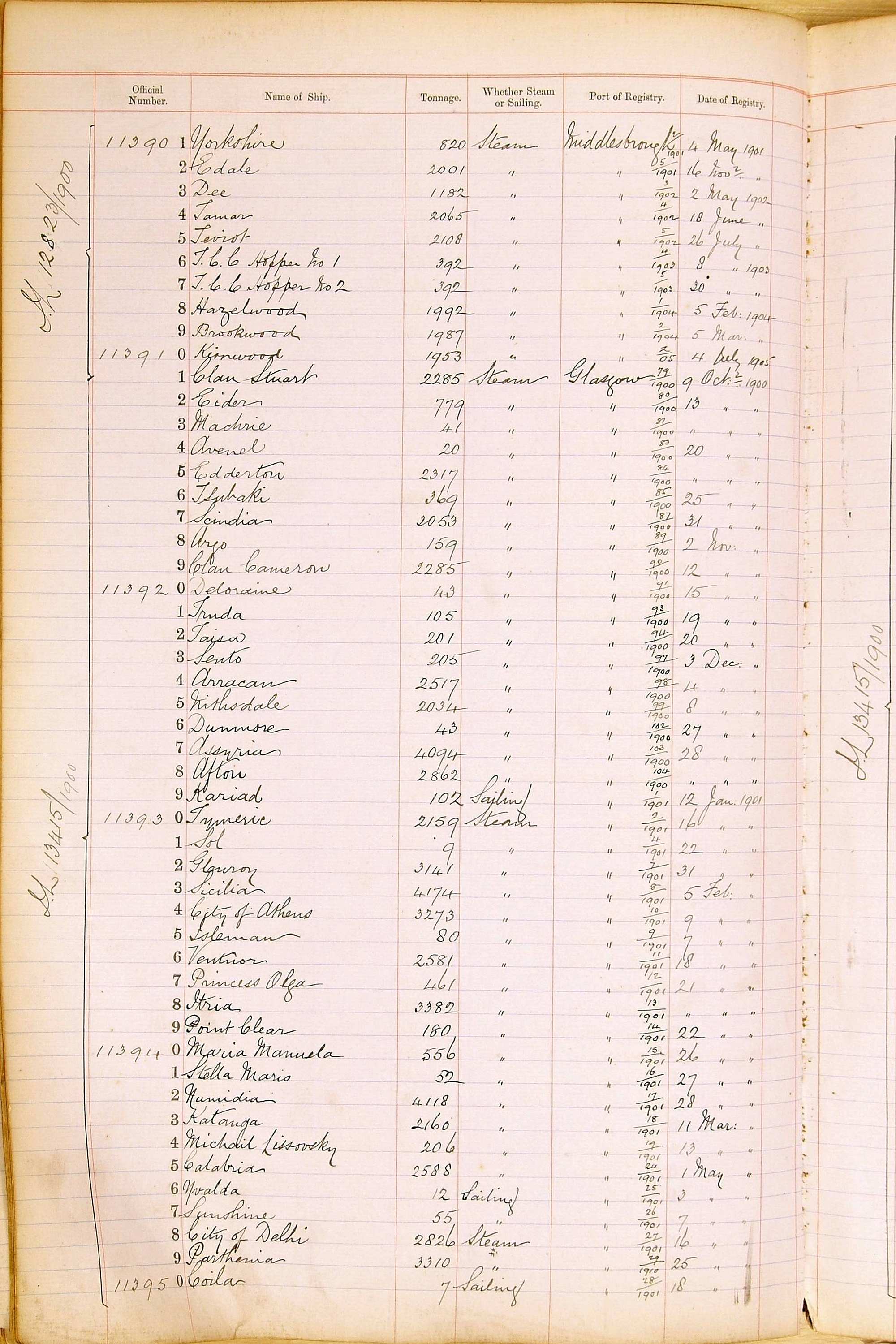 When the system of official numbers began on 16 April 1855, the British Ports of Registry were each allocated batches of official numbers. For official numbers up to 22200 you can see this allocation as a pencil note at the top of the page where the allocation began. A summary of the first allocation is shown here: Initial allocation of official numbers