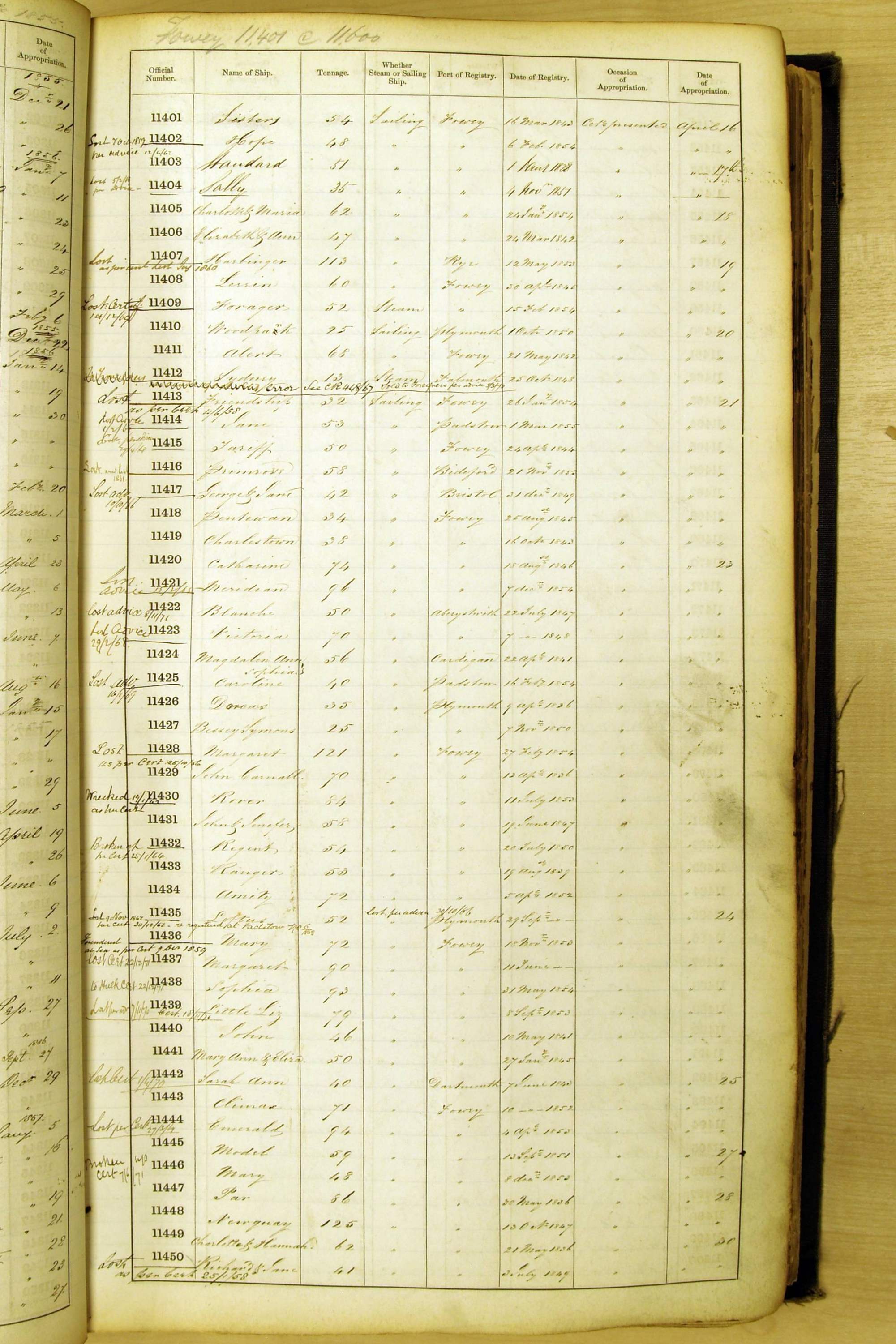 Bear in mind that the ships names in the Appropriation Books are not the definitive name or spelling of the name, even though these are the central records for the whole system. As you can see, the entries are hand-written and derived from hand-written returns made by the various ports, themselves based on the hand-written shipping registers, based on what the port officials thought the person registering the ship was saying or had hand-written down.