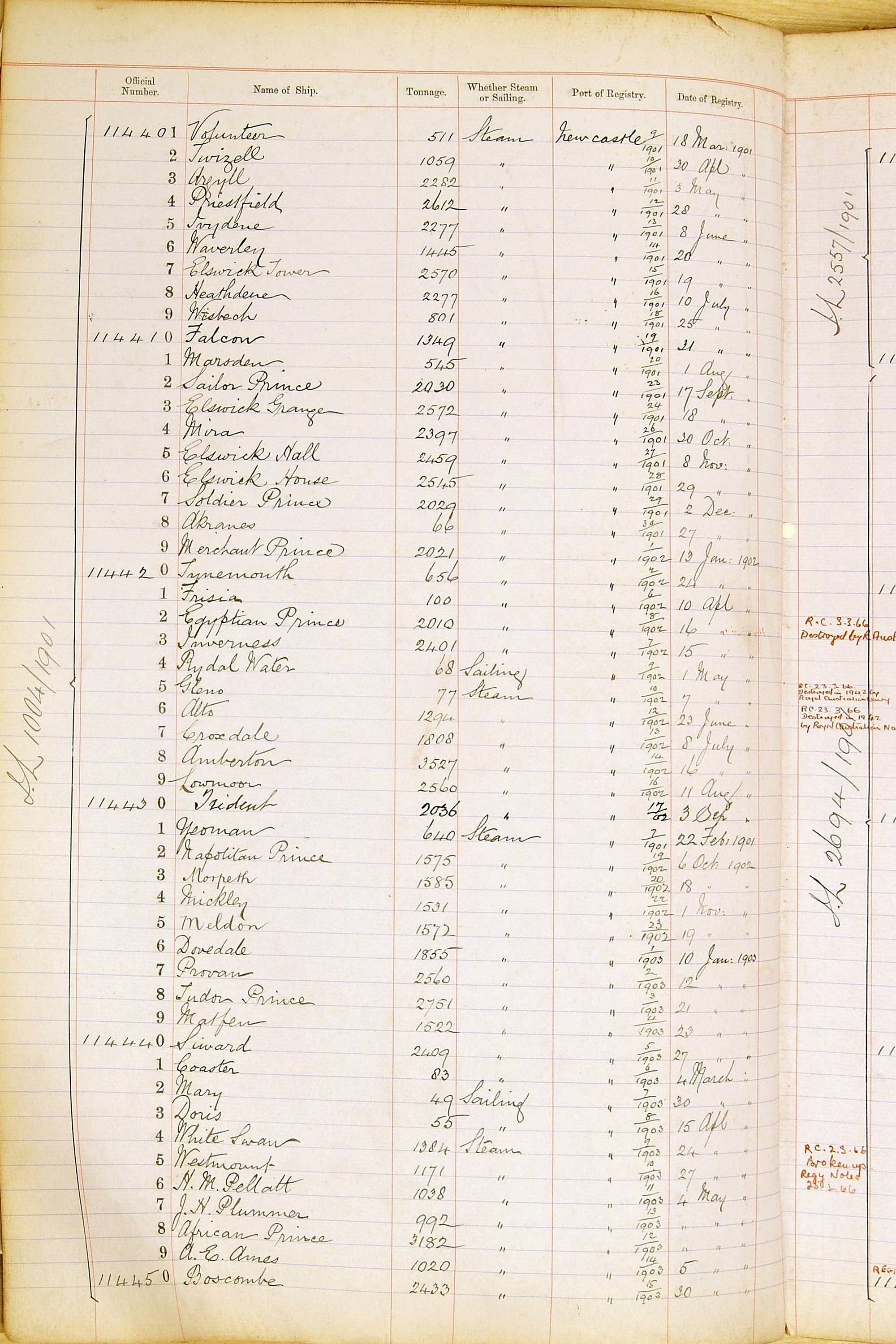The ship names recorded are those that the ships carried at the time that their official numbers were allocated - changes are sometimes noted, but the best source for changes of name are the shipping registers for the port, or alternatively the Mercantile Navy List.
