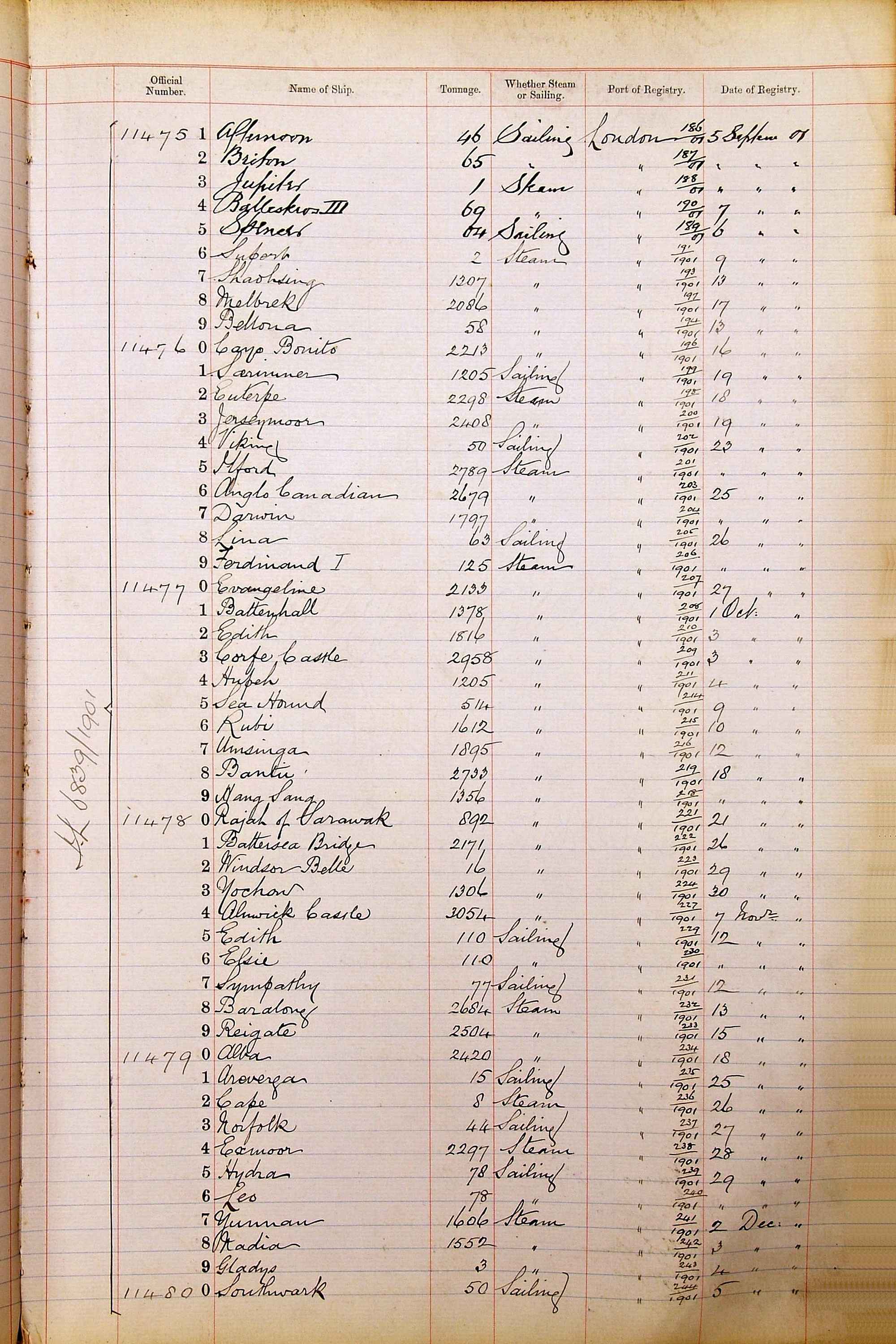 The ship names recorded are those that the ships carried at the time that their official numbers were allocated - changes are sometimes noted, but the best source for changes of name are the shipping registers for the port, or alternatively the Mercantile Navy List.