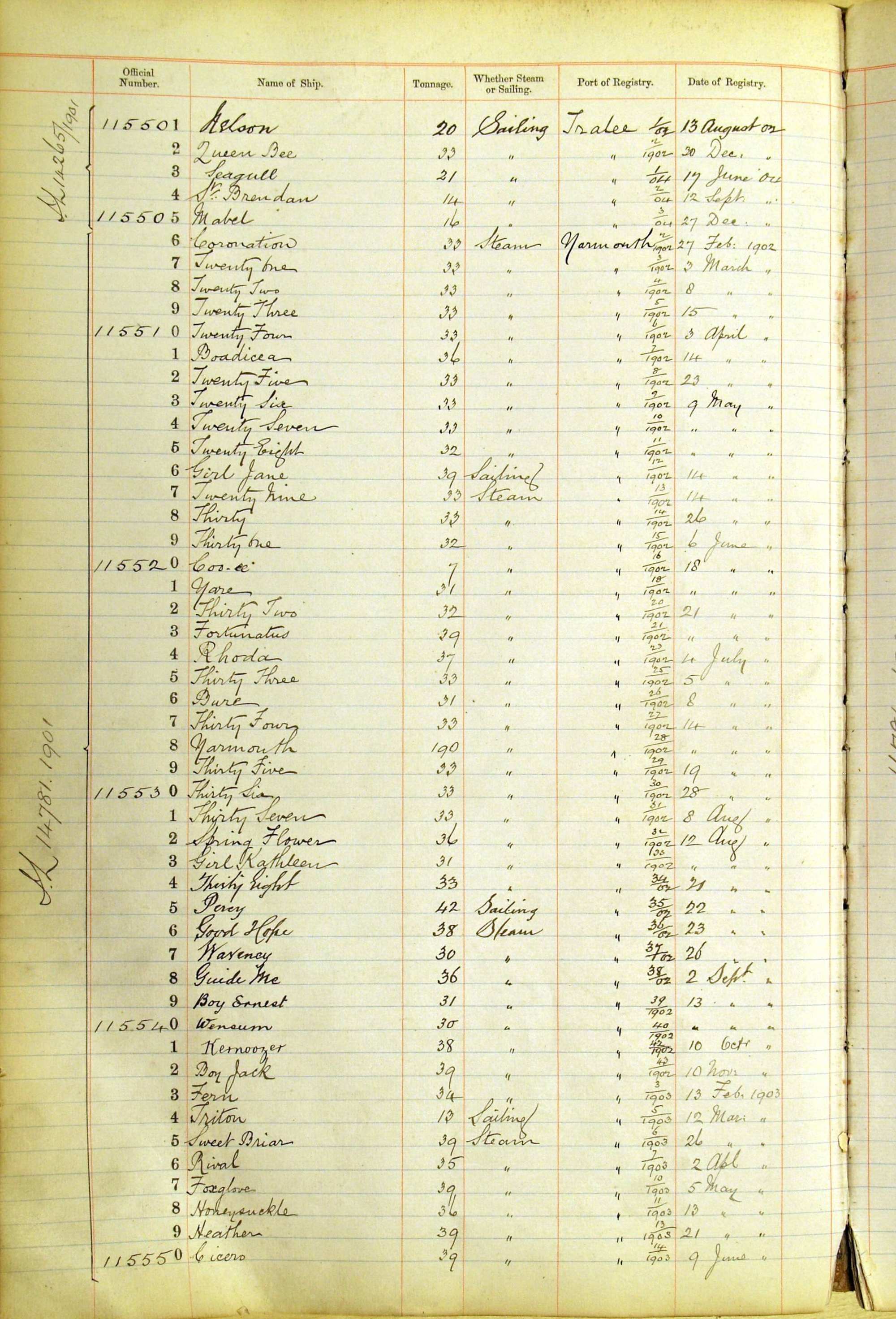 When the system of official numbers began on 16 April 1855, the British Ports of Registry were each allocated batches of official numbers. For official numbers up to 22200 you can see this allocation as a pencil note at the top of the page where the allocation began. A summary of the first allocation is shown here: Initial allocation of official numbers