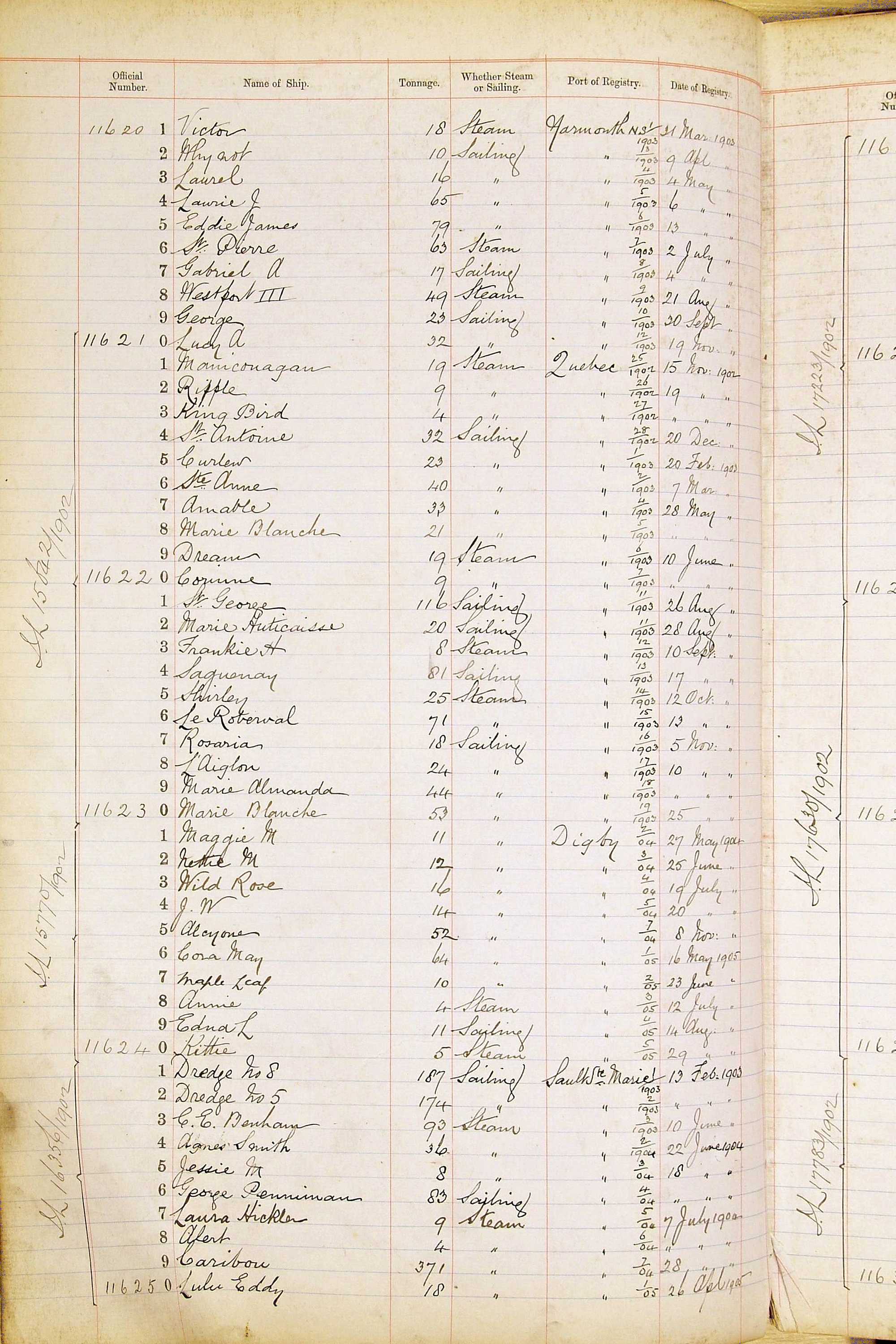 When the system of official numbers began on 16 April 1855, the British Ports of Registry were each allocated batches of official numbers. For official numbers up to 22200 you can see this allocation as a pencil note at the top of the page where the allocation began. A summary of the first allocation is shown here: Initial allocation of official numbers