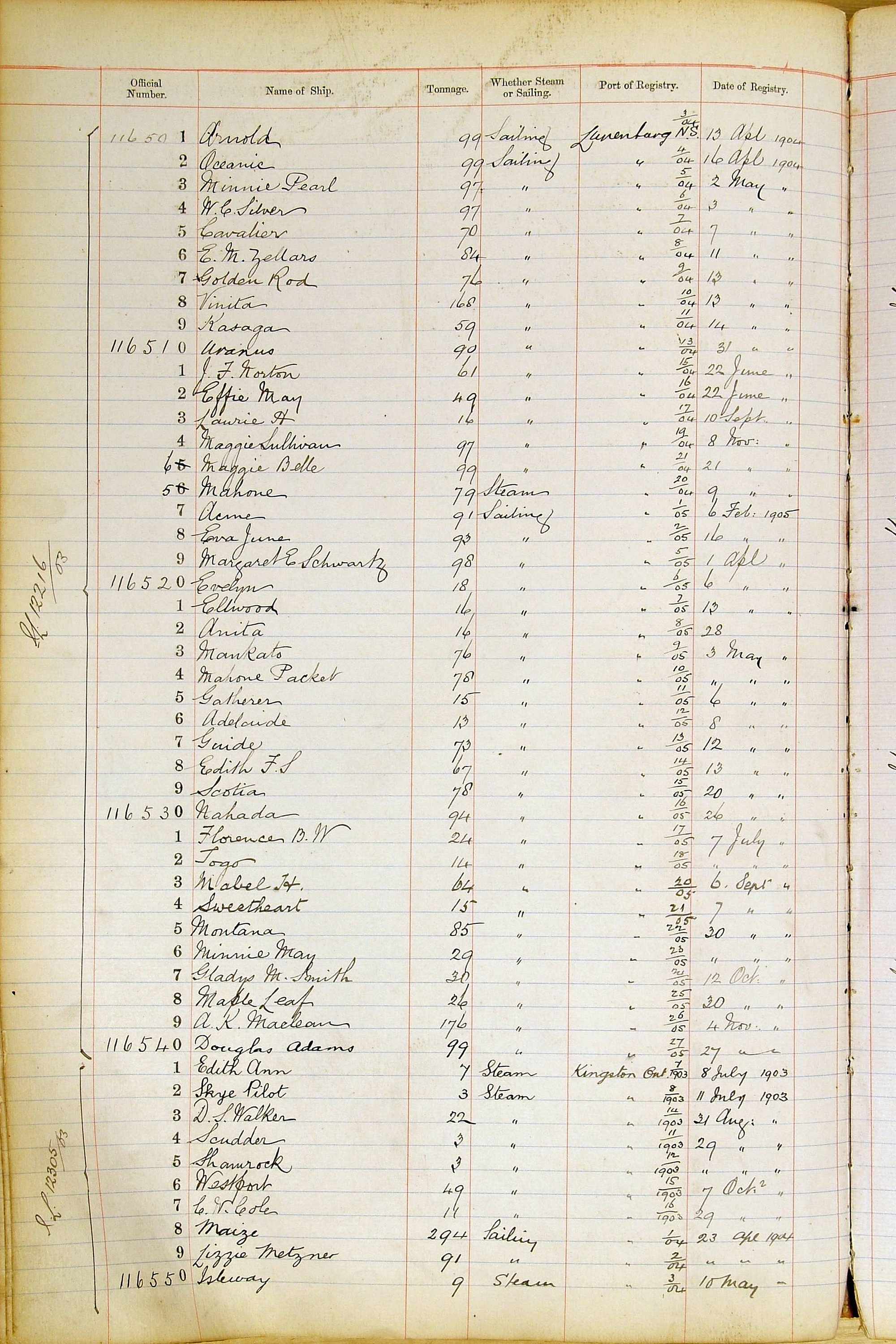 When the system of official numbers began on 16 April 1855, the British Ports of Registry were each allocated batches of official numbers. For official numbers up to 22200 you can see this allocation as a pencil note at the top of the page where the allocation began. A summary of the first allocation is shown here: Initial allocation of official numbers