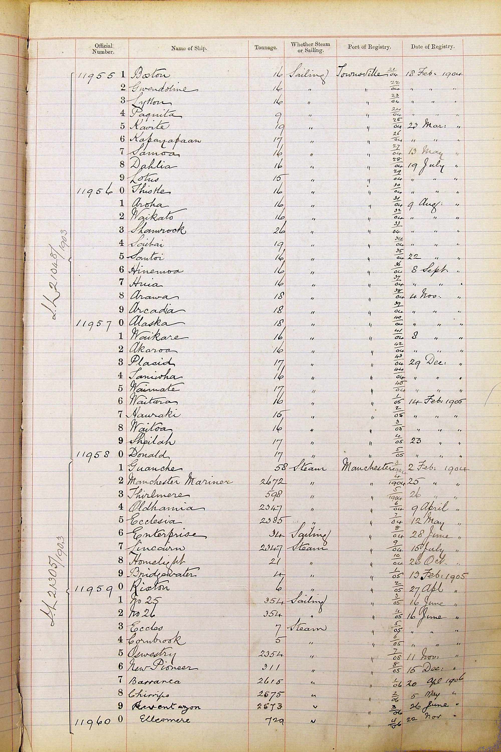 When the system of official numbers began on 16 April 1855, the British Ports of Registry were each allocated batches of official numbers. For official numbers up to 22200 you can see this allocation as a pencil note at the top of the page where the allocation began. A summary of the first allocation is shown here: Initial allocation of official numbers