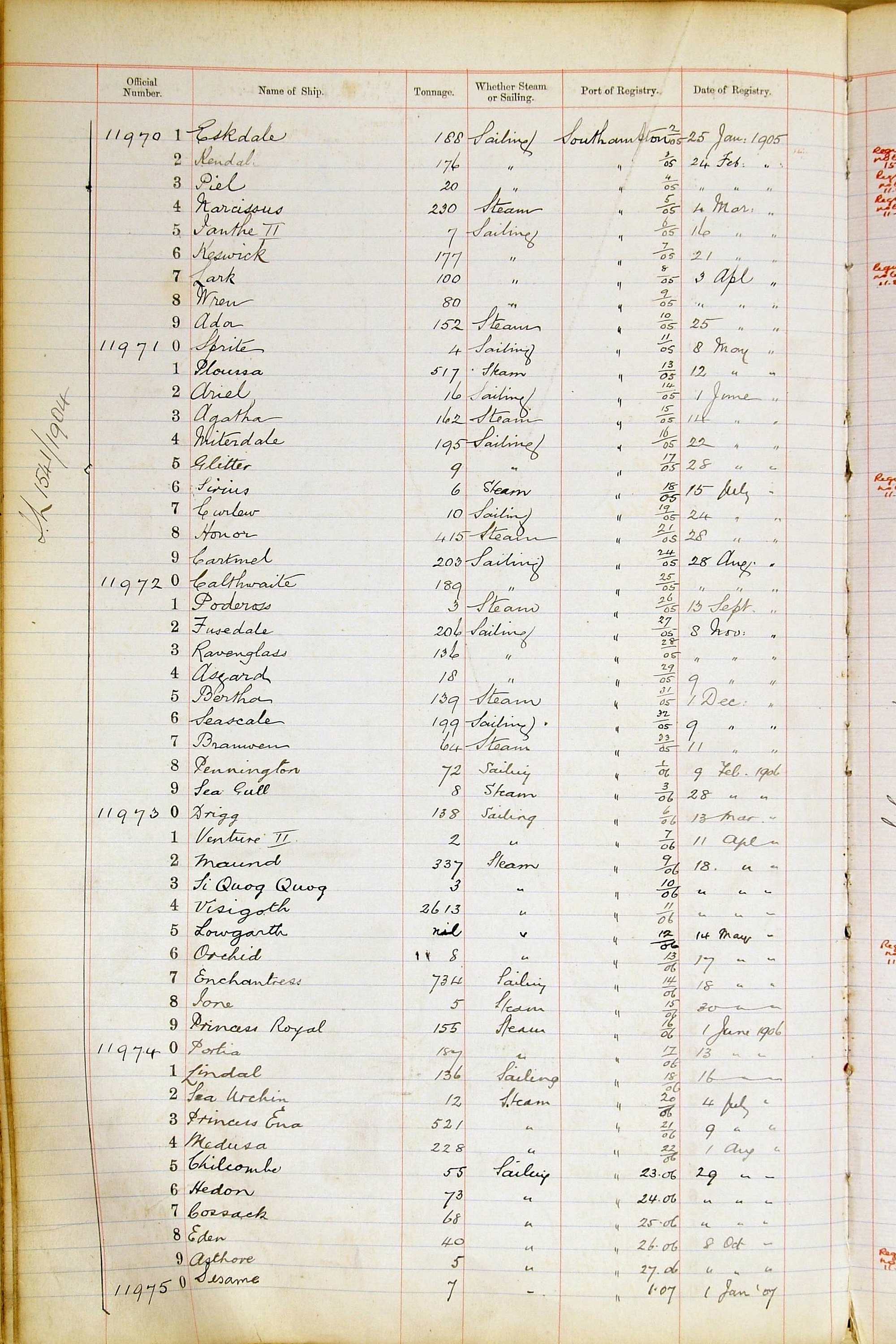 When the system of official numbers began on 16 April 1855, the British Ports of Registry were each allocated batches of official numbers. For official numbers up to 22200 you can see this allocation as a pencil note at the top of the page where the allocation began. A summary of the first allocation is shown here: Initial allocation of official numbers
