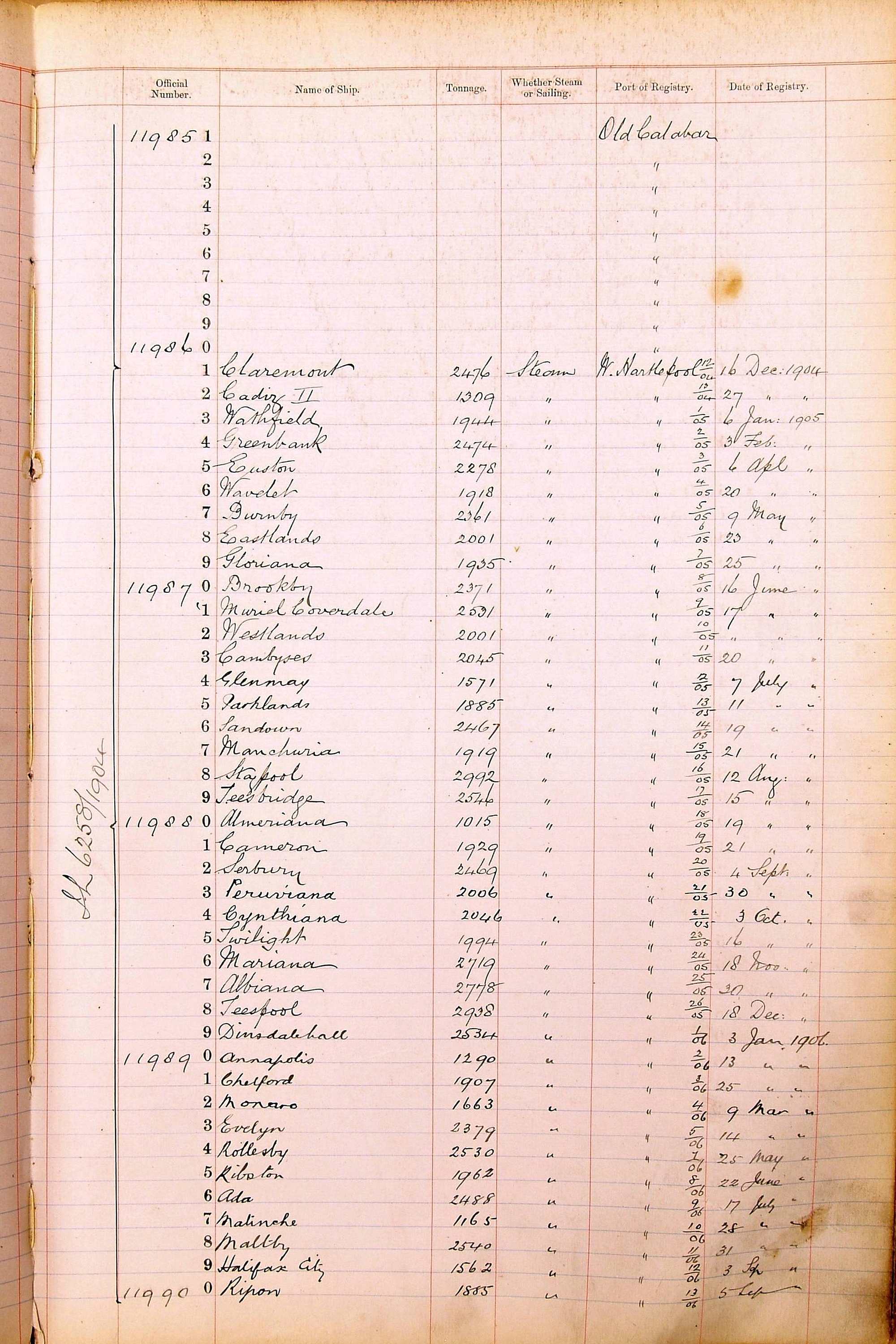 When the system of official numbers began on 16 April 1855, the British Ports of Registry were each allocated batches of official numbers. For official numbers up to 22200 you can see this allocation as a pencil note at the top of the page where the allocation began. A summary of the first allocation is shown here: Initial allocation of official numbers