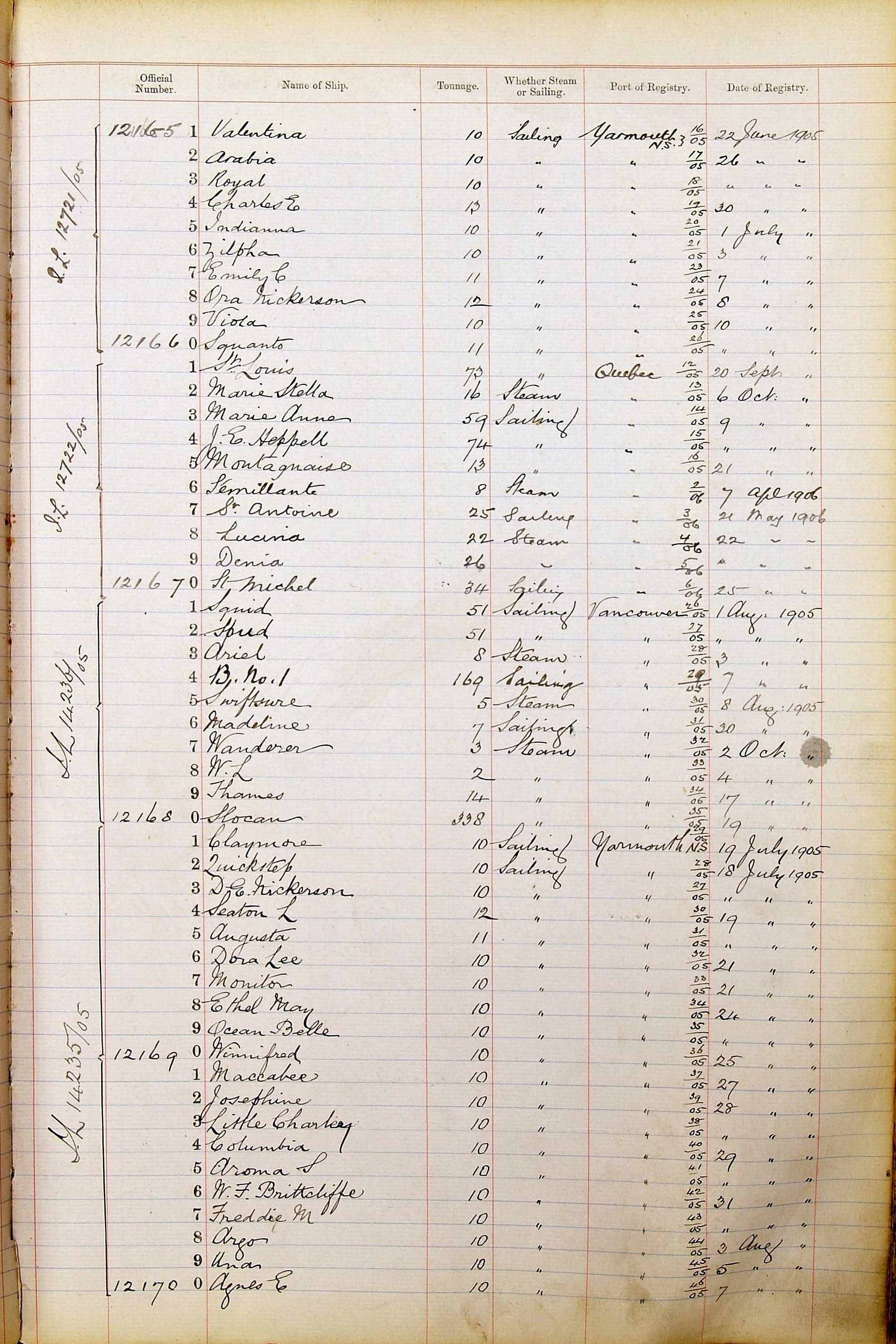 The ship names recorded are those that the ships carried at the time that their official numbers were allocated - changes are sometimes noted, but the best source for changes of name are the shipping registers for the port, or alternatively the Mercantile Navy List.