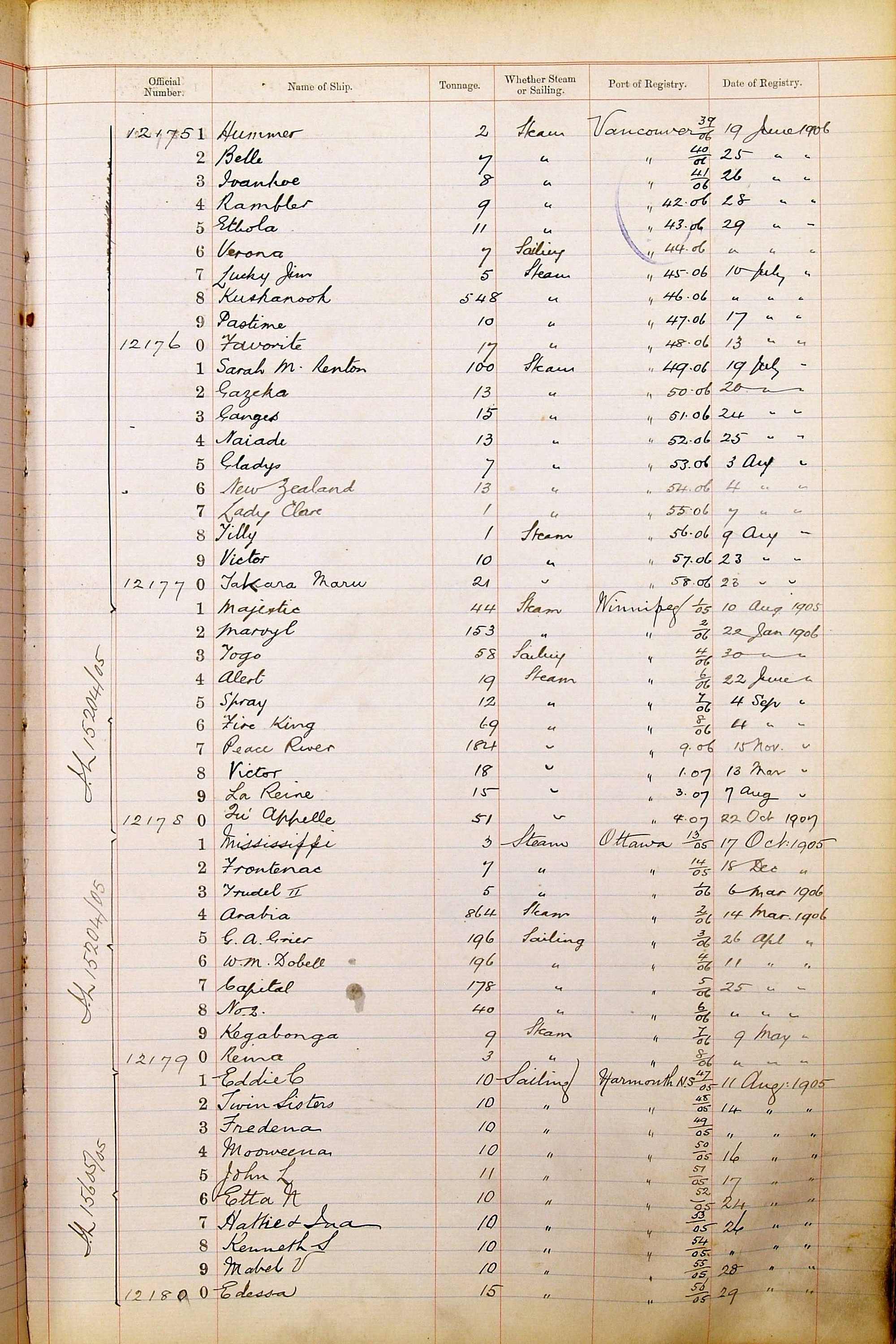When the system of official numbers began on 16 April 1855, the British Ports of Registry were each allocated batches of official numbers. For official numbers up to 22200 you can see this allocation as a pencil note at the top of the page where the allocation began. A summary of the first allocation is shown here: Initial allocation of official numbers