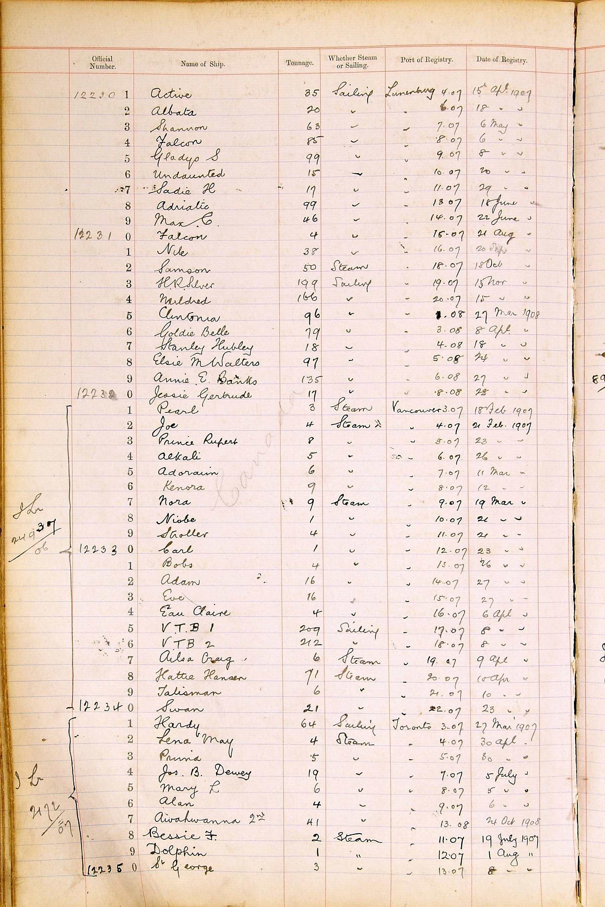 When the system of official numbers began on 16 April 1855, the British Ports of Registry were each allocated batches of official numbers. For official numbers up to 22200 you can see this allocation as a pencil note at the top of the page where the allocation began. A summary of the first allocation is shown here: Initial allocation of official numbers