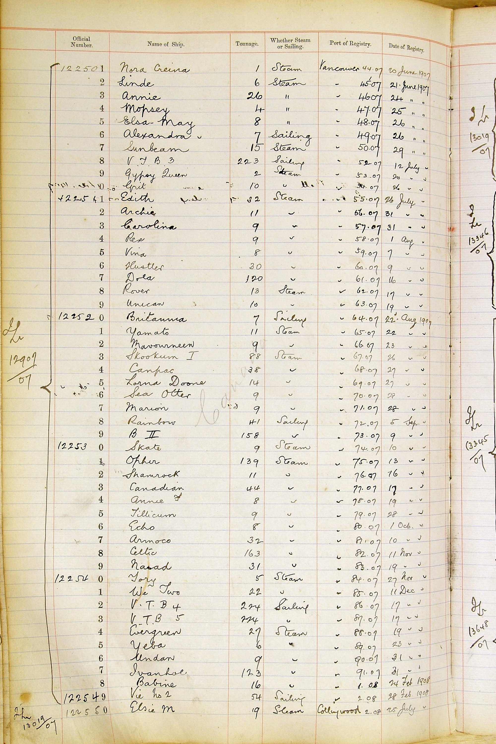 When the system of official numbers began on 16 April 1855, the British Ports of Registry were each allocated batches of official numbers. For official numbers up to 22200 you can see this allocation as a pencil note at the top of the page where the allocation began. A summary of the first allocation is shown here: Initial allocation of official numbers