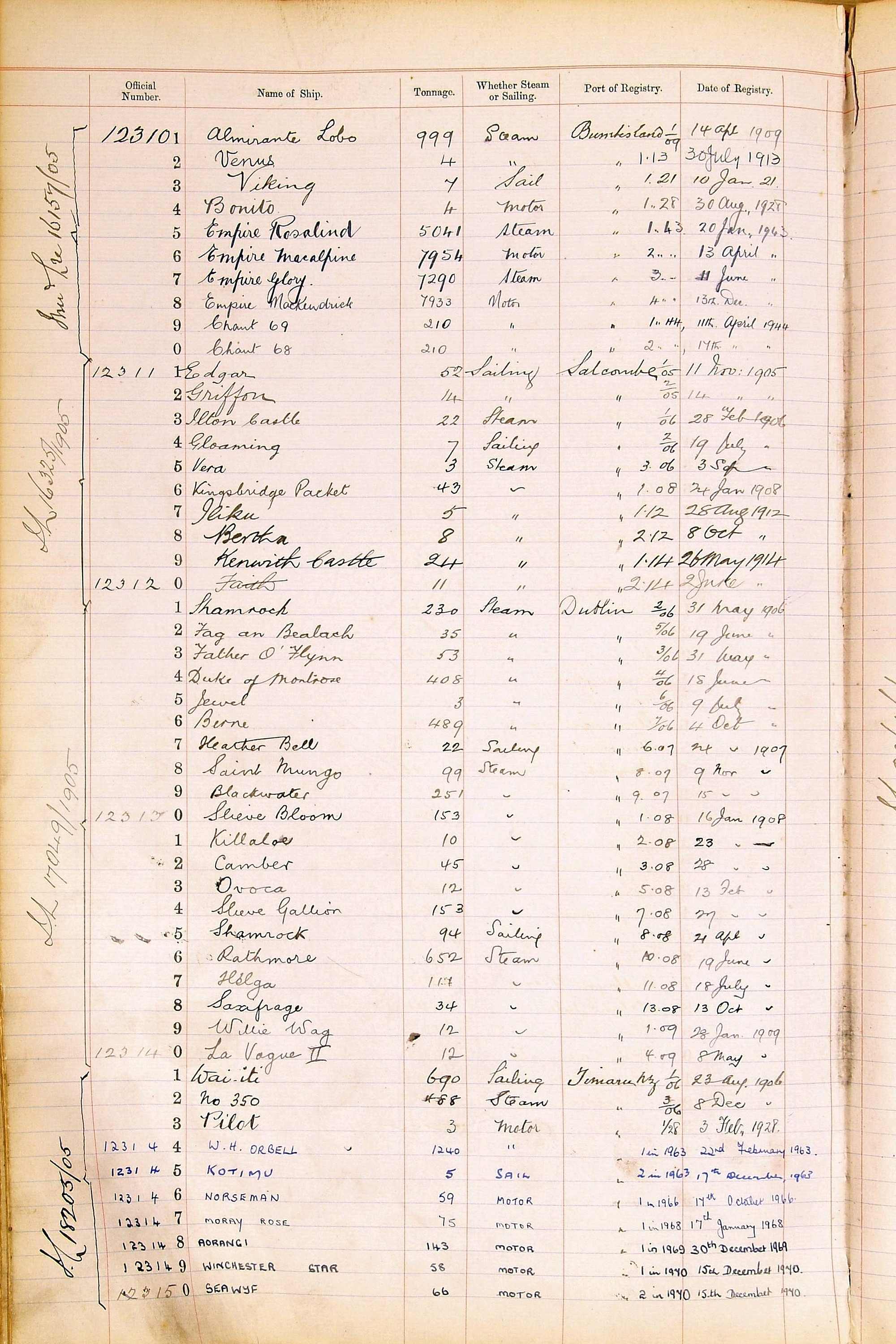 When the system of official numbers began on 16 April 1855, the British Ports of Registry were each allocated batches of official numbers. For official numbers up to 22200 you can see this allocation as a pencil note at the top of the page where the allocation began. A summary of the first allocation is shown here: Initial allocation of official numbers