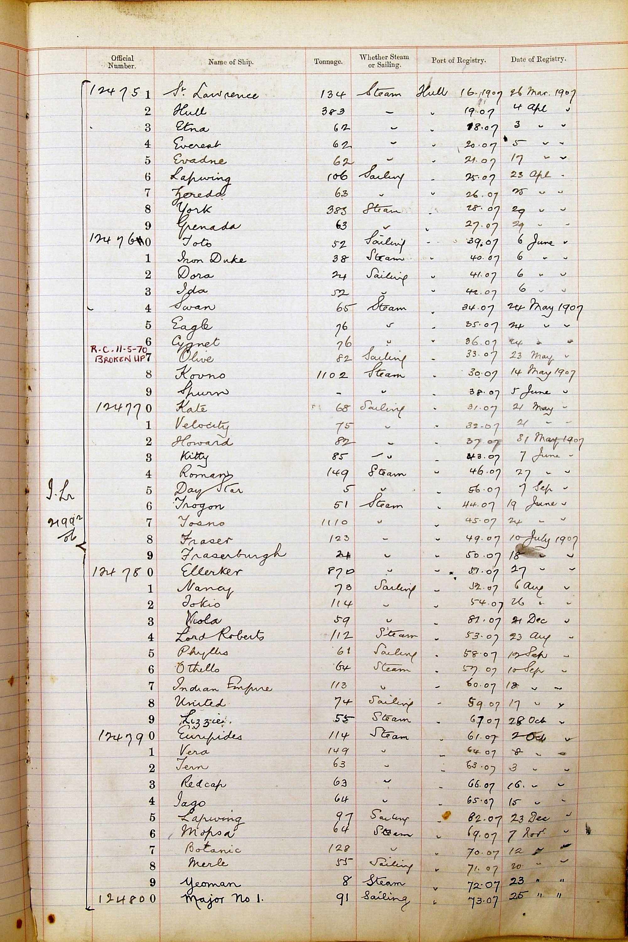 When the system of official numbers began on 16 April 1855, the British Ports of Registry were each allocated batches of official numbers. For official numbers up to 22200 you can see this allocation as a pencil note at the top of the page where the allocation began. A summary of the first allocation is shown here: Initial allocation of official numbers