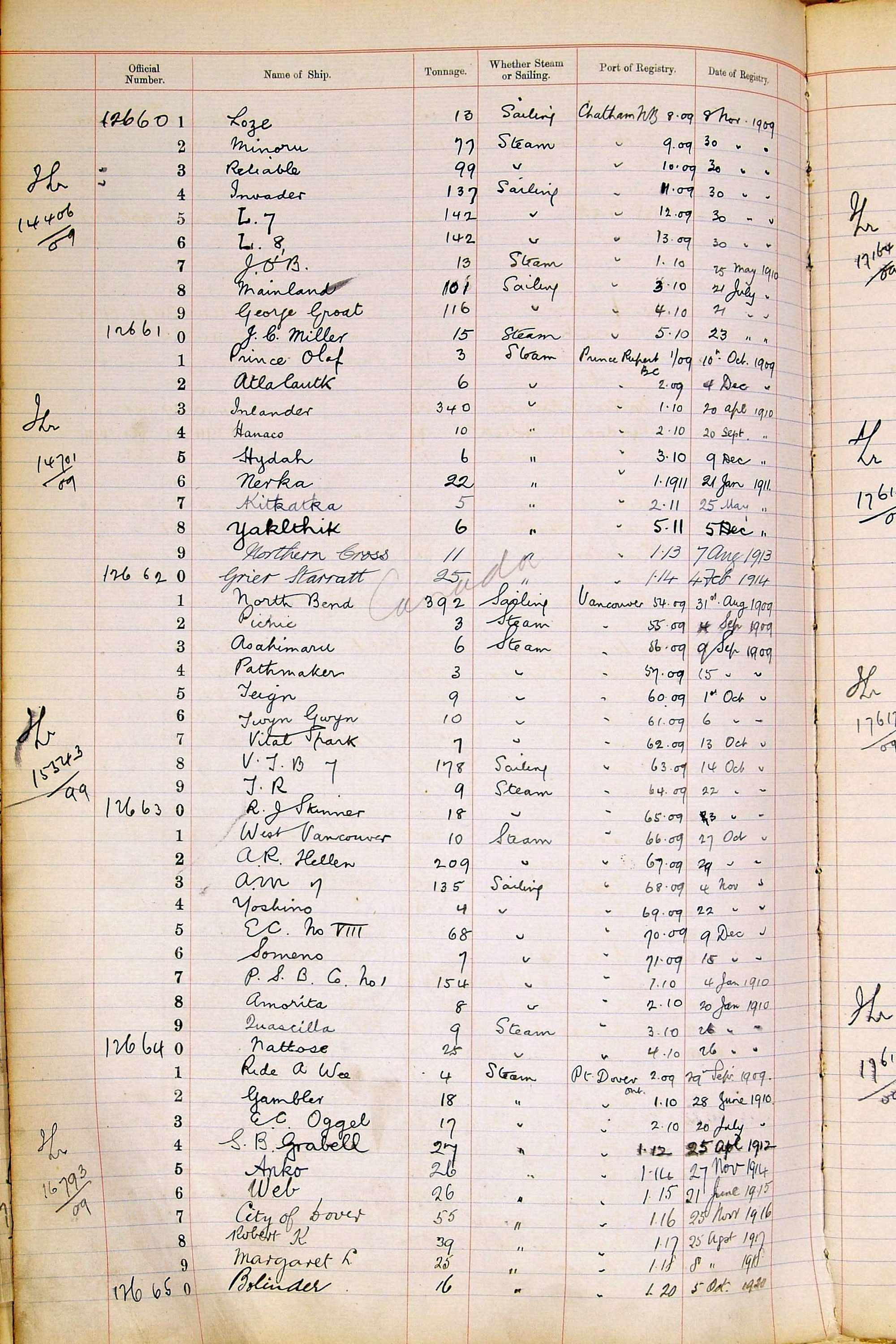 When the system of official numbers began on 16 April 1855, the British Ports of Registry were each allocated batches of official numbers. For official numbers up to 22200 you can see this allocation as a pencil note at the top of the page where the allocation began. A summary of the first allocation is shown here: Initial allocation of official numbers