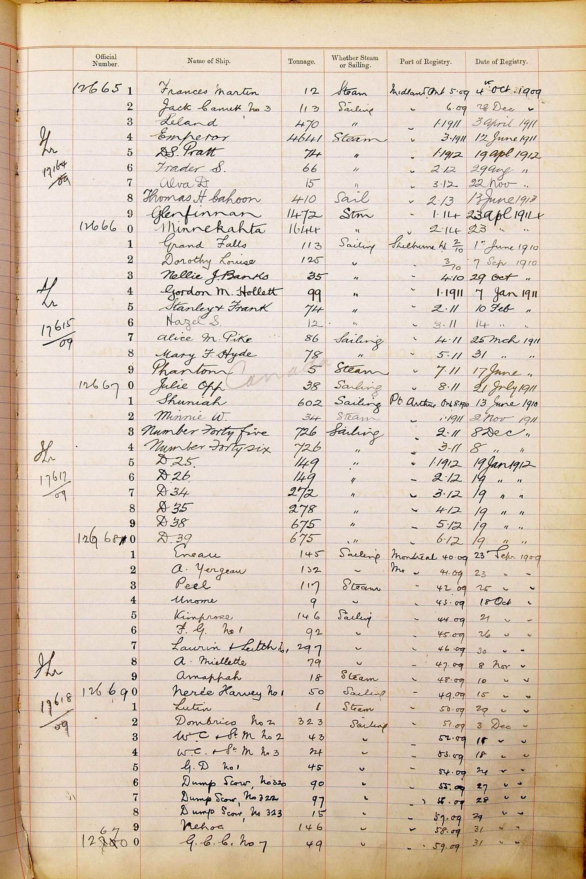 The ship names recorded are those that the ships carried at the time that their official numbers were allocated - changes are sometimes noted, but the best source for changes of name are the shipping registers for the port, or alternatively the Mercantile Navy List.