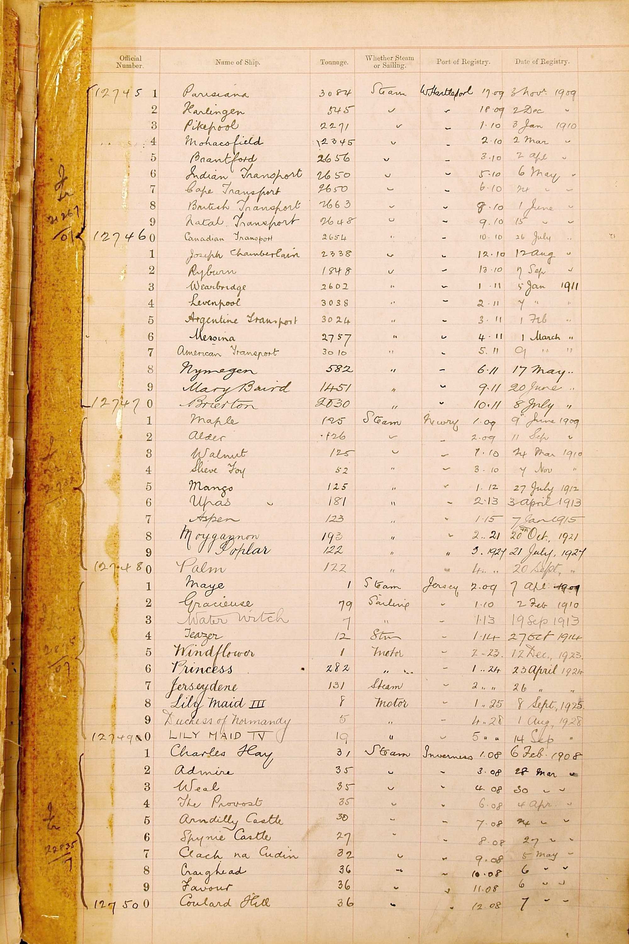 The ship names recorded are those that the ships carried at the time that their official numbers were allocated - changes are sometimes noted, but the best source for changes of name are the shipping registers for the port, or alternatively the Mercantile Navy List.