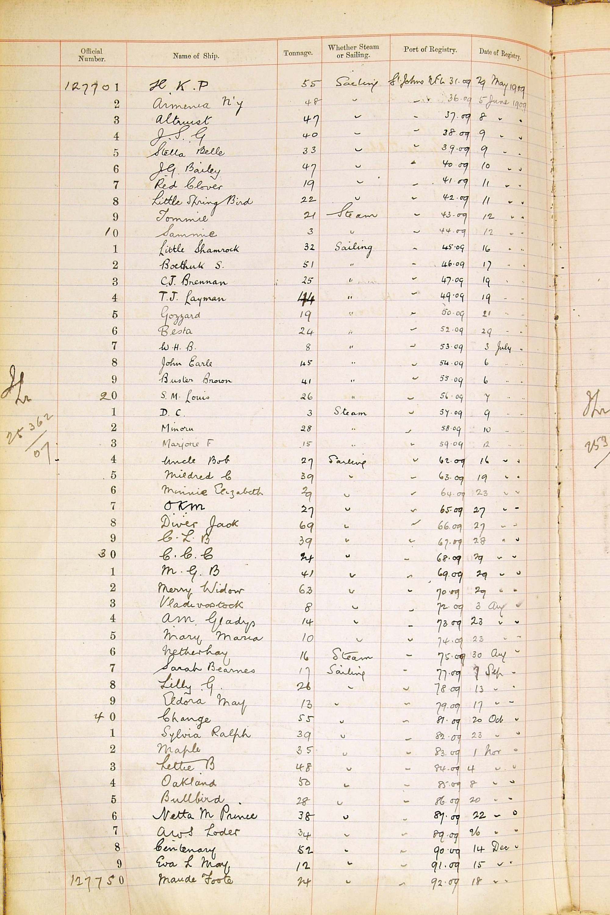 When the system of official numbers began on 16 April 1855, the British Ports of Registry were each allocated batches of official numbers. For official numbers up to 22200 you can see this allocation as a pencil note at the top of the page where the allocation began. A summary of the first allocation is shown here: Initial allocation of official numbers
