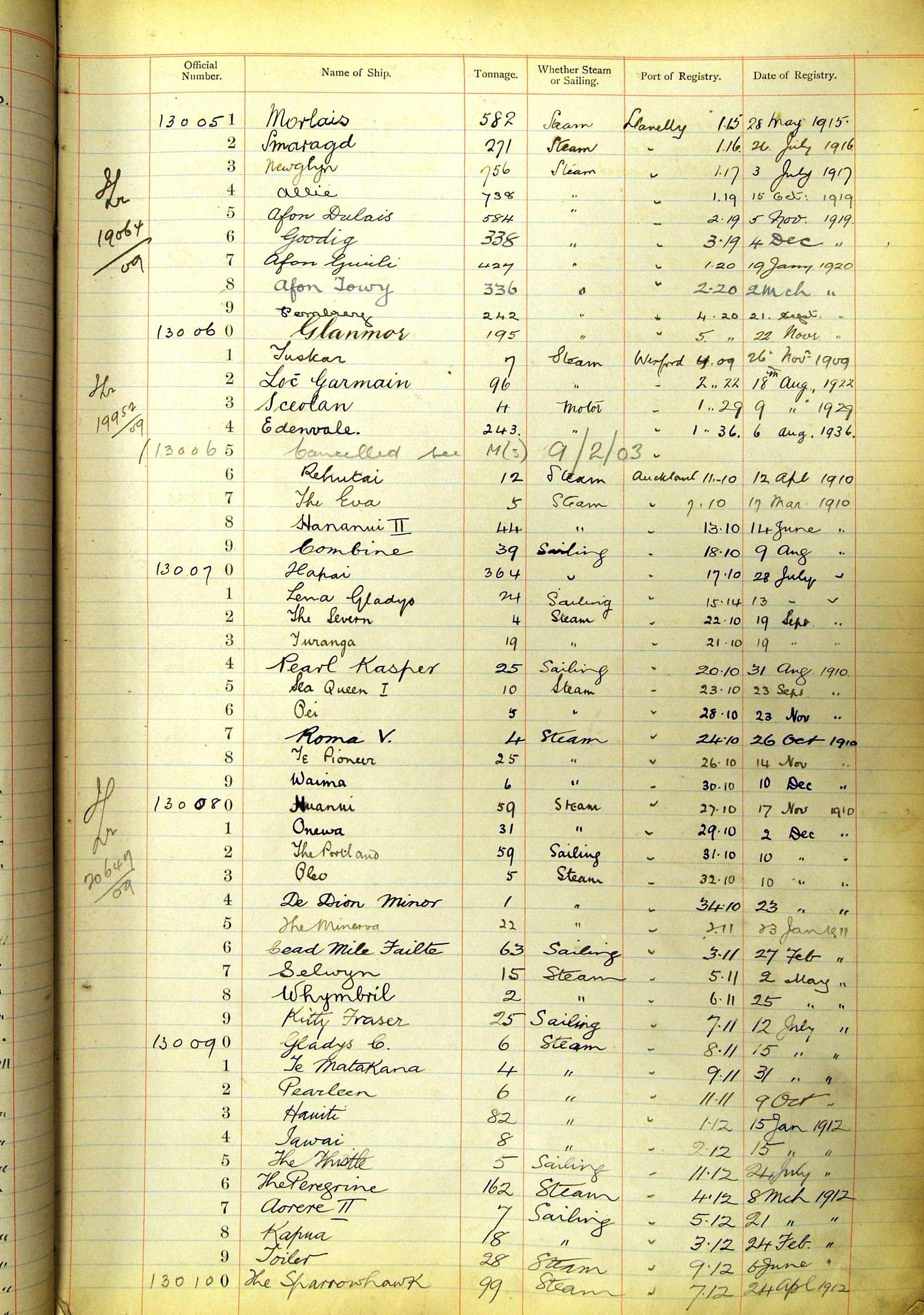When the system of official numbers began on 16 April 1855, the British Ports of Registry were each allocated batches of official numbers. For official numbers up to 22200 you can see this allocation as a pencil note at the top of the page where the allocation began. A summary of the first allocation is shown here: Initial allocation of official numbers