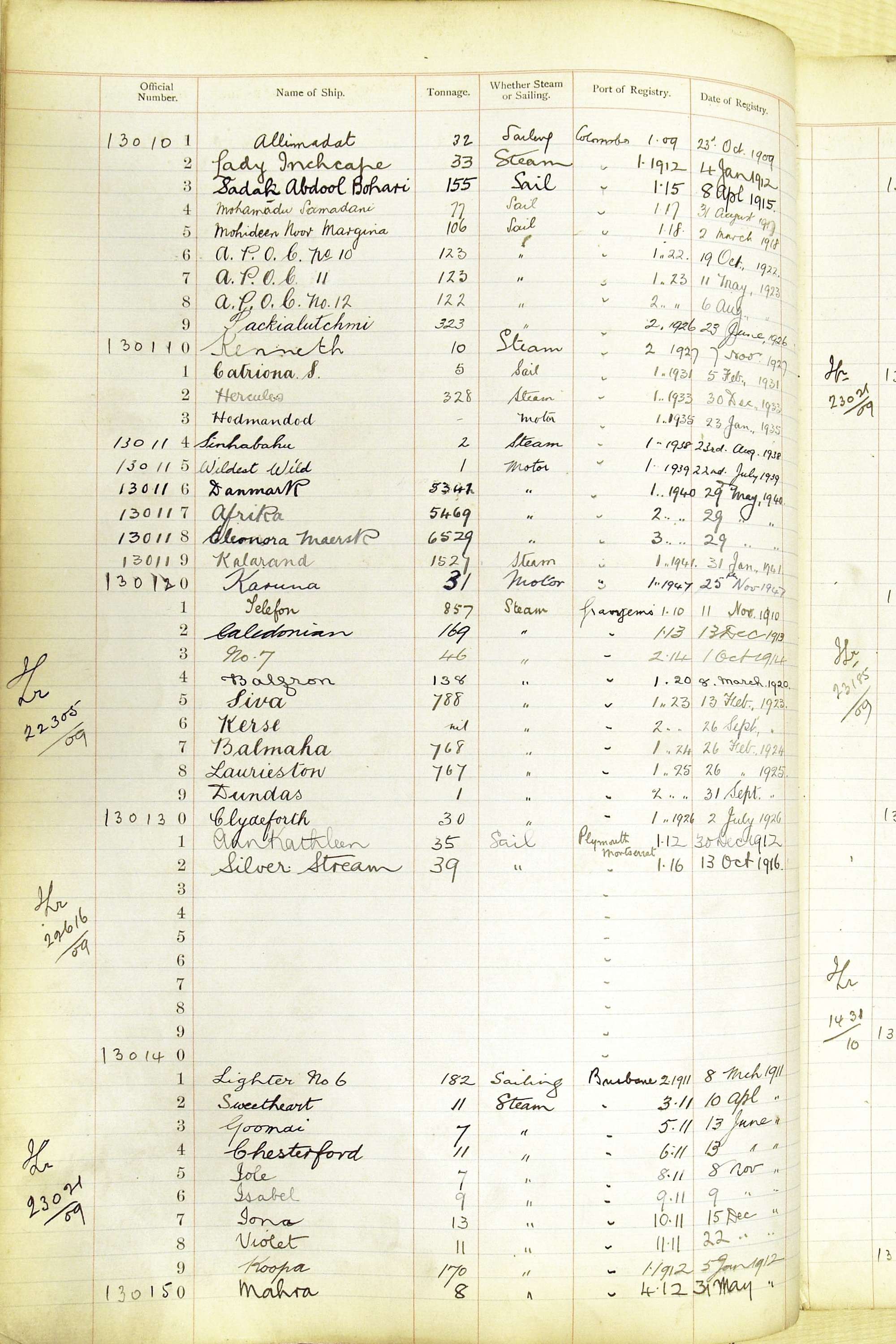 When the system of official numbers began on 16 April 1855, the British Ports of Registry were each allocated batches of official numbers. For official numbers up to 22200 you can see this allocation as a pencil note at the top of the page where the allocation began. A summary of the first allocation is shown here: Initial allocation of official numbers