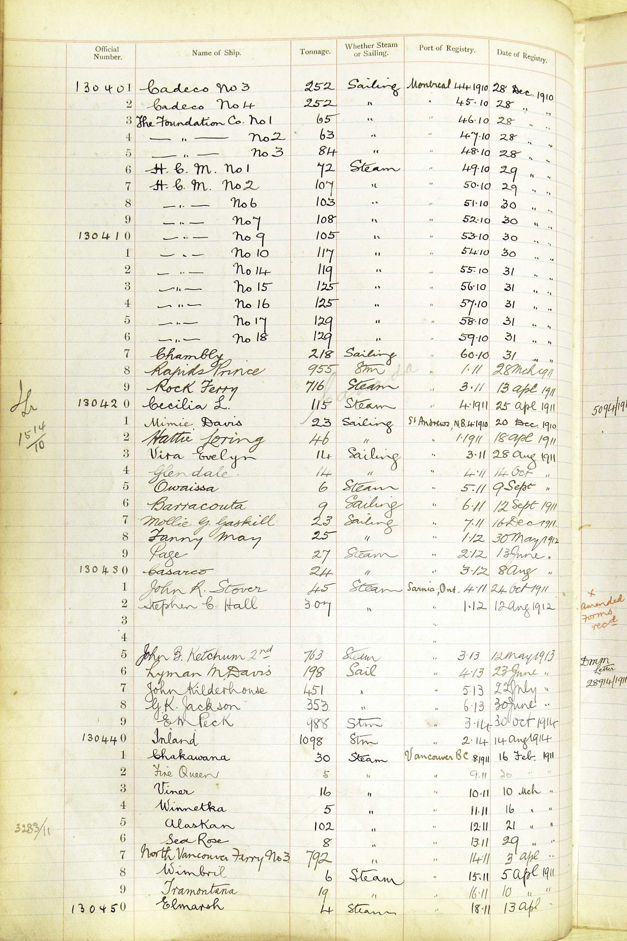 When the system of official numbers began on 16 April 1855, the British Ports of Registry were each allocated batches of official numbers. For official numbers up to 22200 you can see this allocation as a pencil note at the top of the page where the allocation began. A summary of the first allocation is shown here: Initial allocation of official numbers