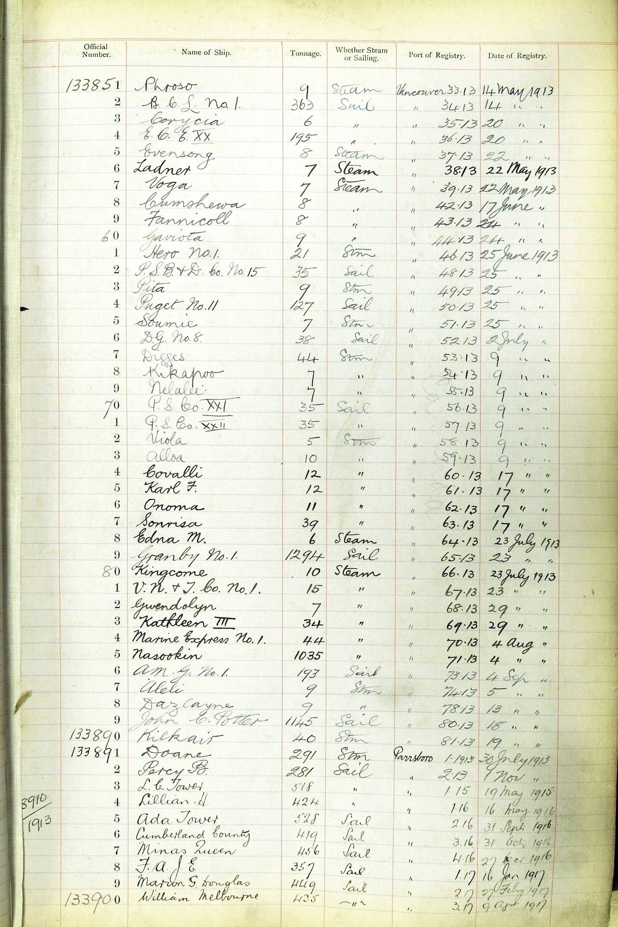 The ship names recorded are those that the ships carried at the time that their official numbers were allocated - changes are sometimes noted, but the best source for changes of name are the shipping registers for the port, or alternatively the Mercantile Navy List.