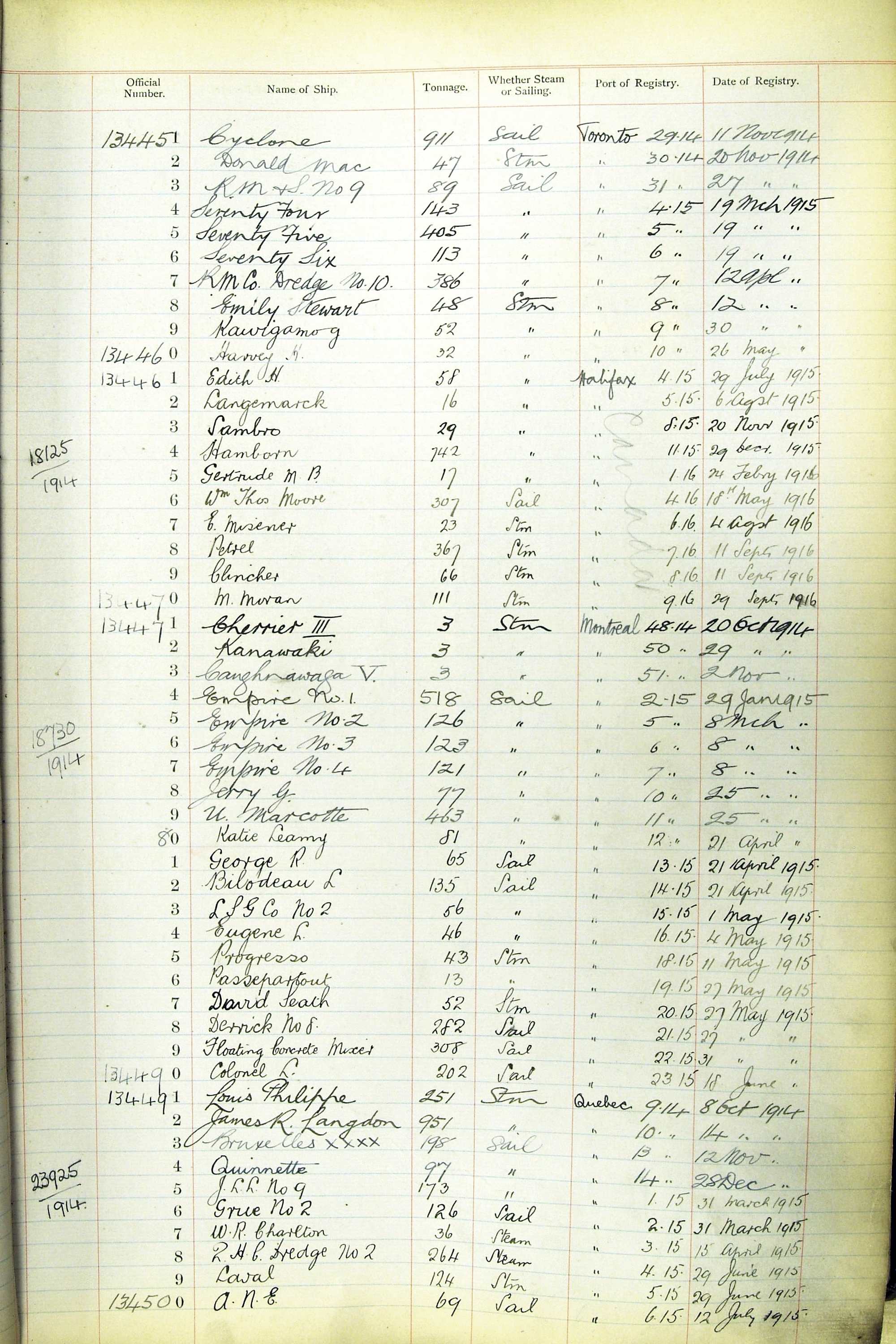 The ship names recorded are those that the ships carried at the time that their official numbers were allocated - changes are sometimes noted, but the best source for changes of name are the shipping registers for the port, or alternatively the Mercantile Navy List.