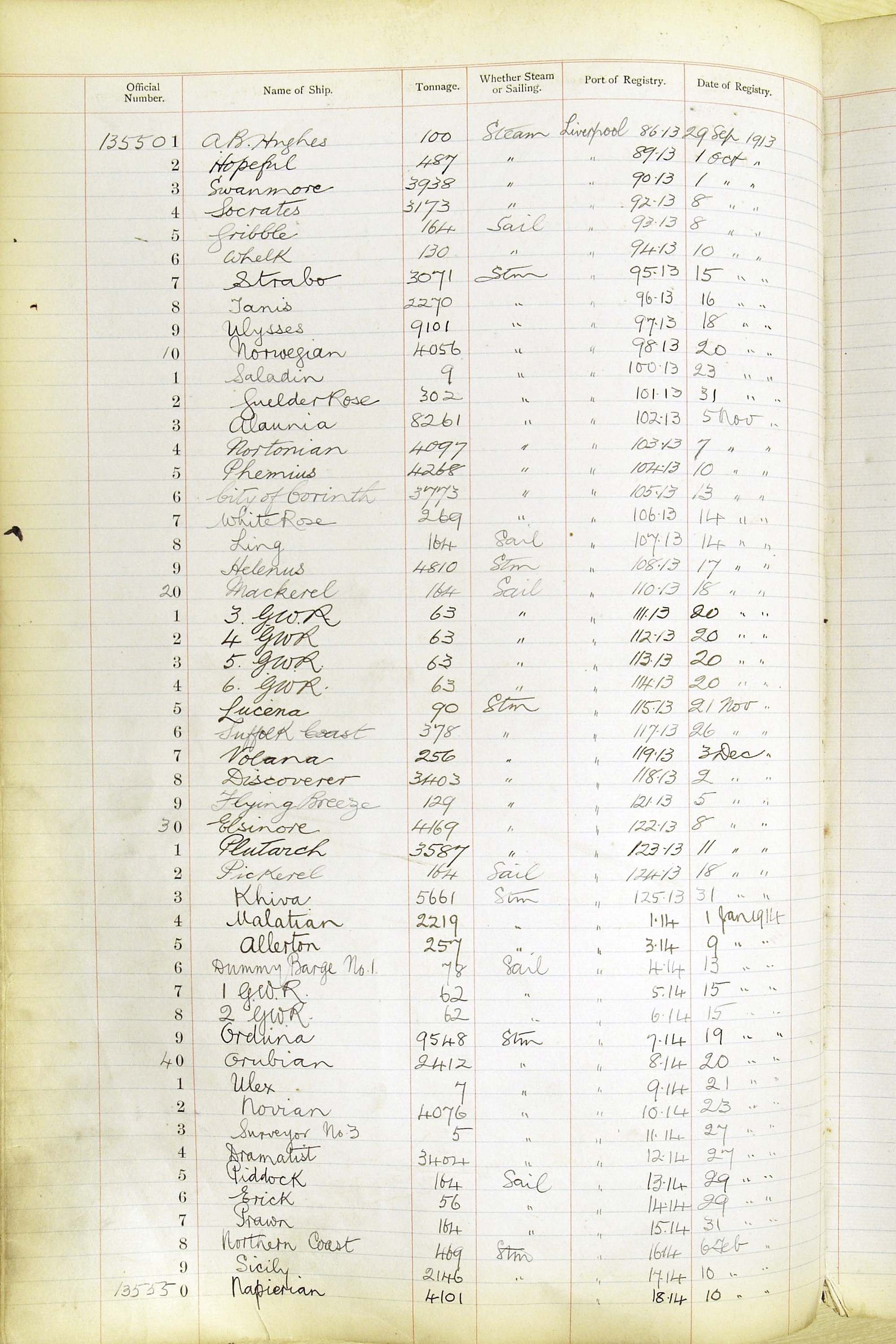 The ship names recorded are those that the ships carried at the time that their official numbers were allocated - changes are sometimes noted, but the best source for changes of name are the shipping registers for the port, or alternatively the Mercantile Navy List.