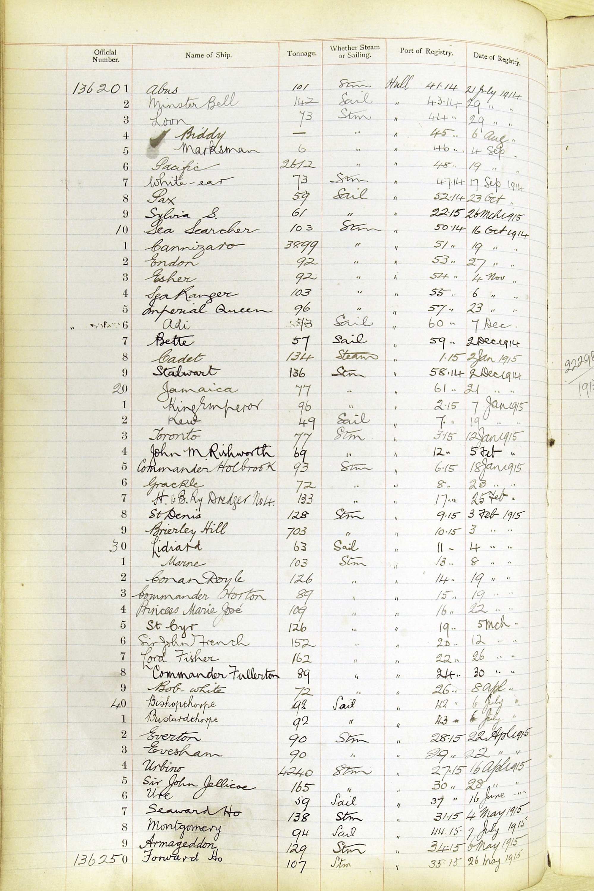 When the system of official numbers began on 16 April 1855, the British Ports of Registry were each allocated batches of official numbers. For official numbers up to 22200 you can see this allocation as a pencil note at the top of the page where the allocation began. A summary of the first allocation is shown here: Initial allocation of official numbers