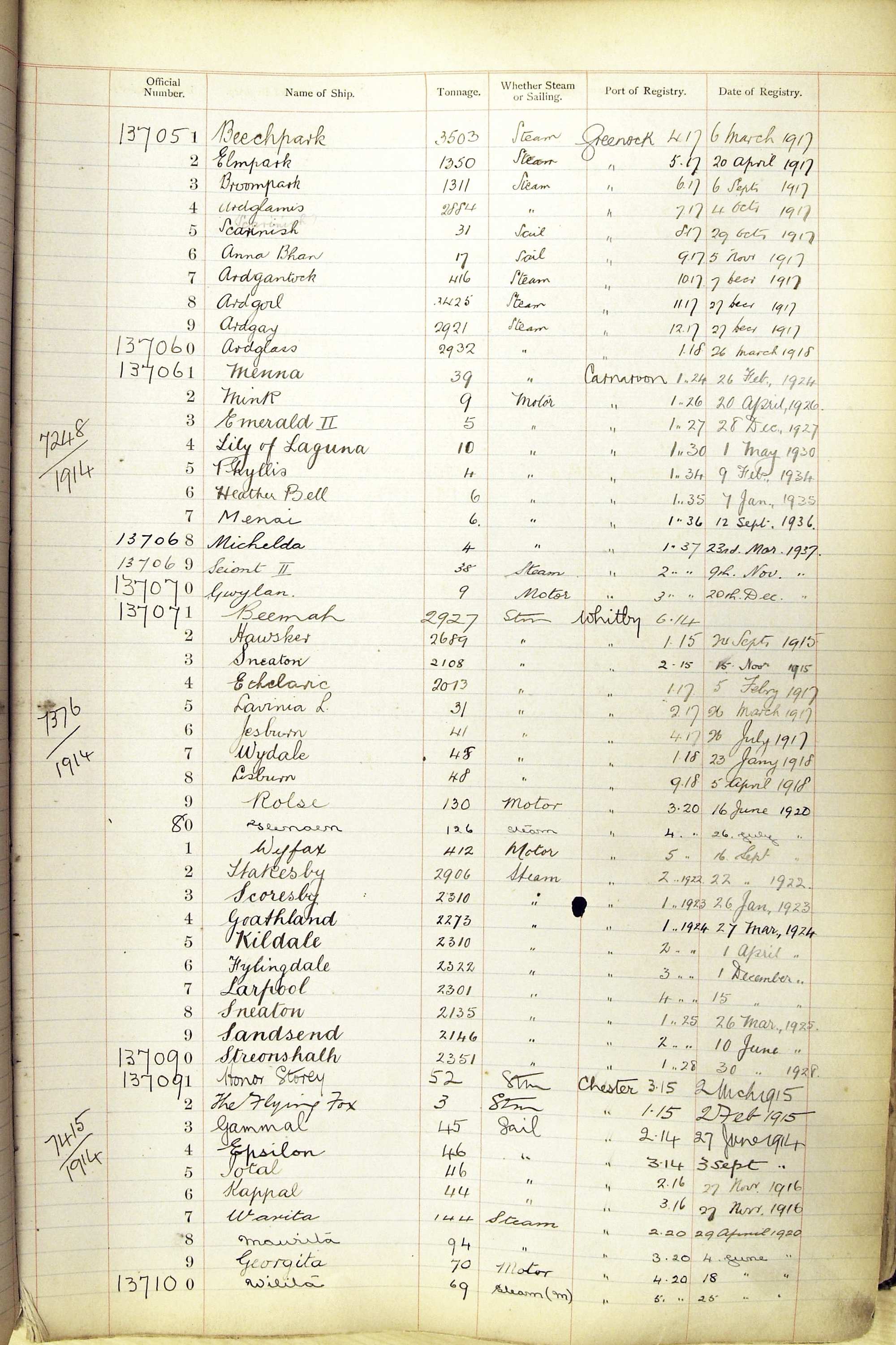 The ship names recorded are those that the ships carried at the time that their official numbers were allocated - changes are sometimes noted, but the best source for changes of name are the shipping registers for the port, or alternatively the Mercantile Navy List.