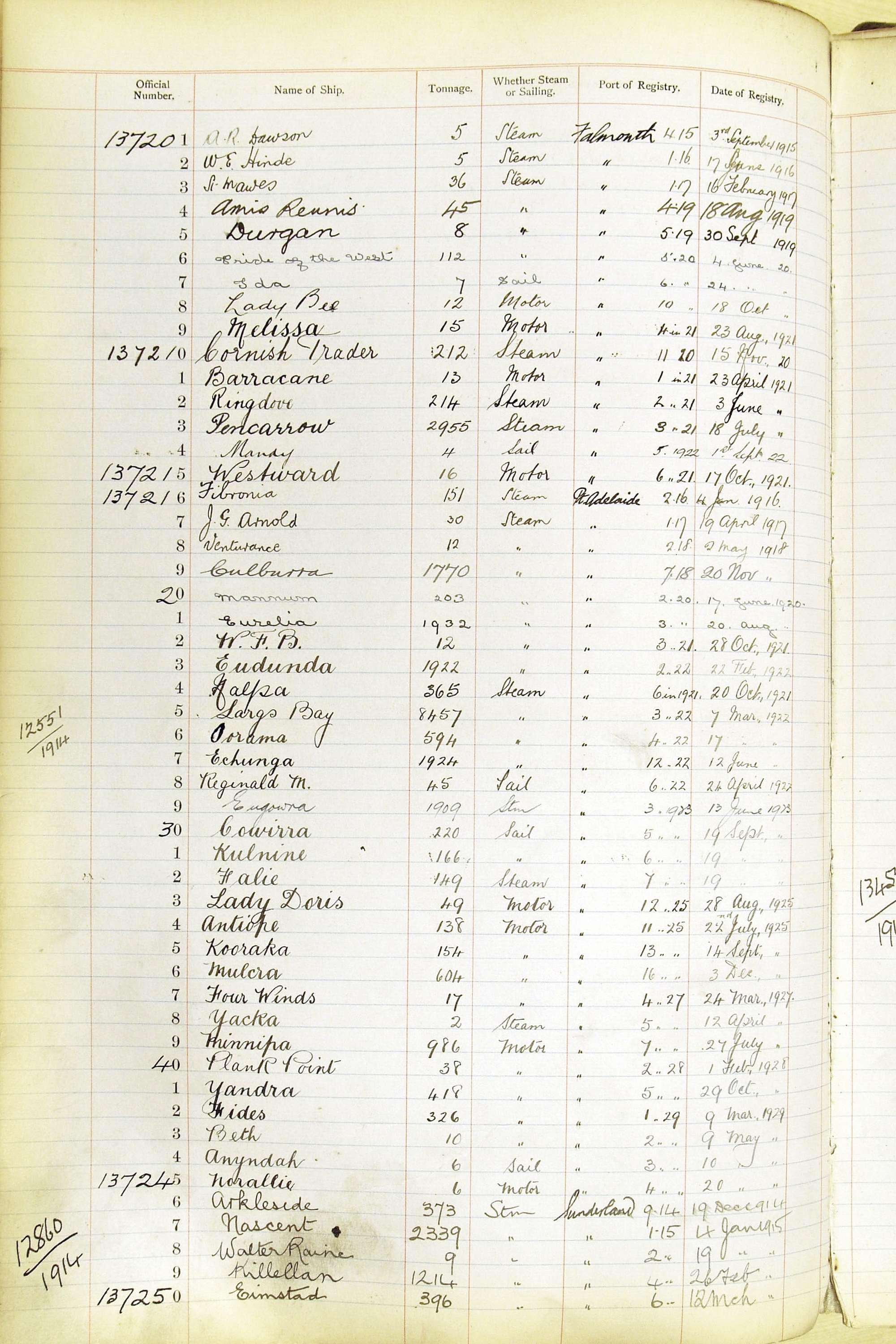 The ship names recorded are those that the ships carried at the time that their official numbers were allocated - changes are sometimes noted, but the best source for changes of name are the shipping registers for the port, or alternatively the Mercantile Navy List.