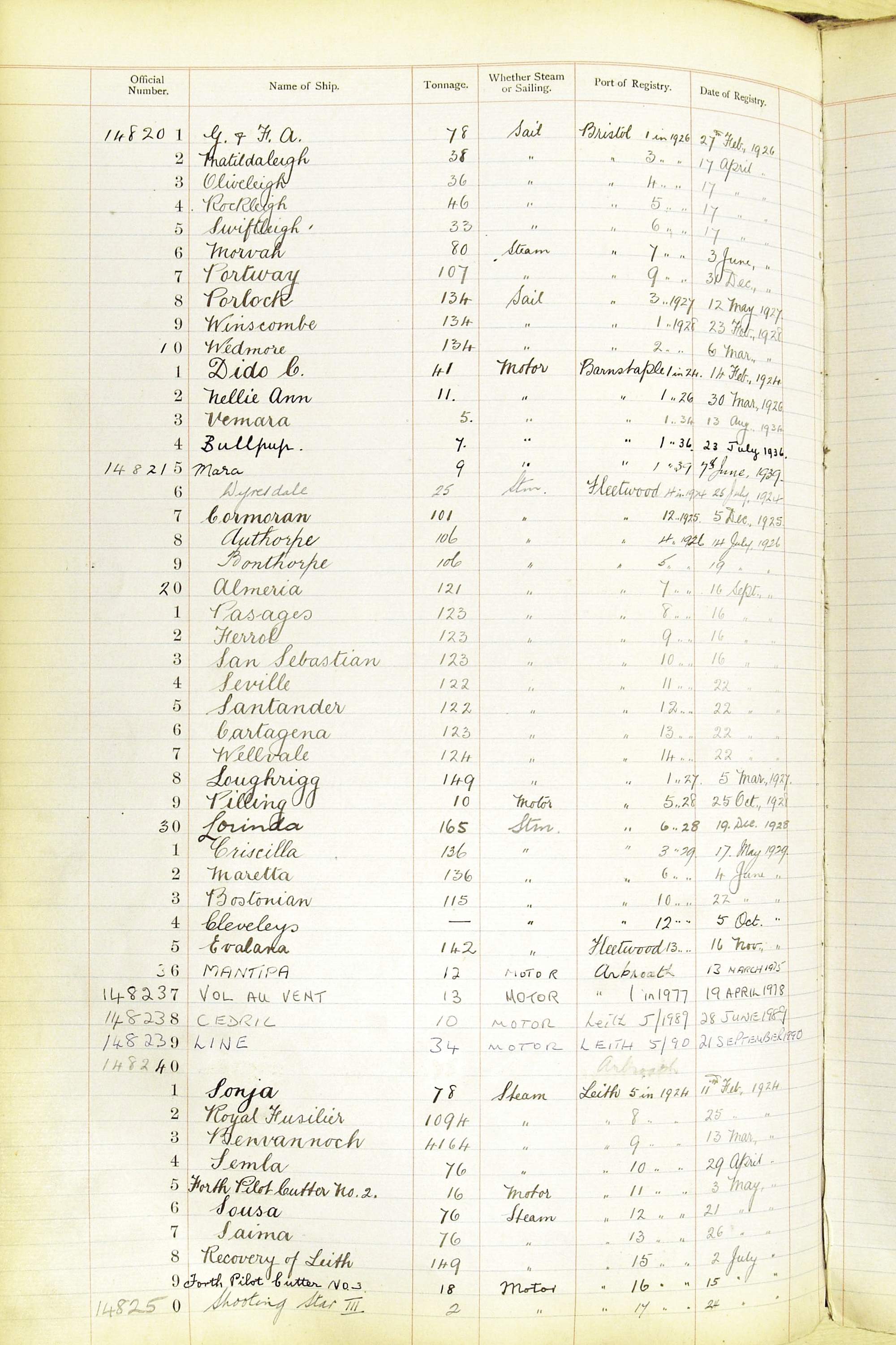 The ship names recorded are those that the ships carried at the time that their official numbers were allocated - changes are sometimes noted, but the best source for changes of name are the shipping registers for the port, or alternatively the Mercantile Navy List.