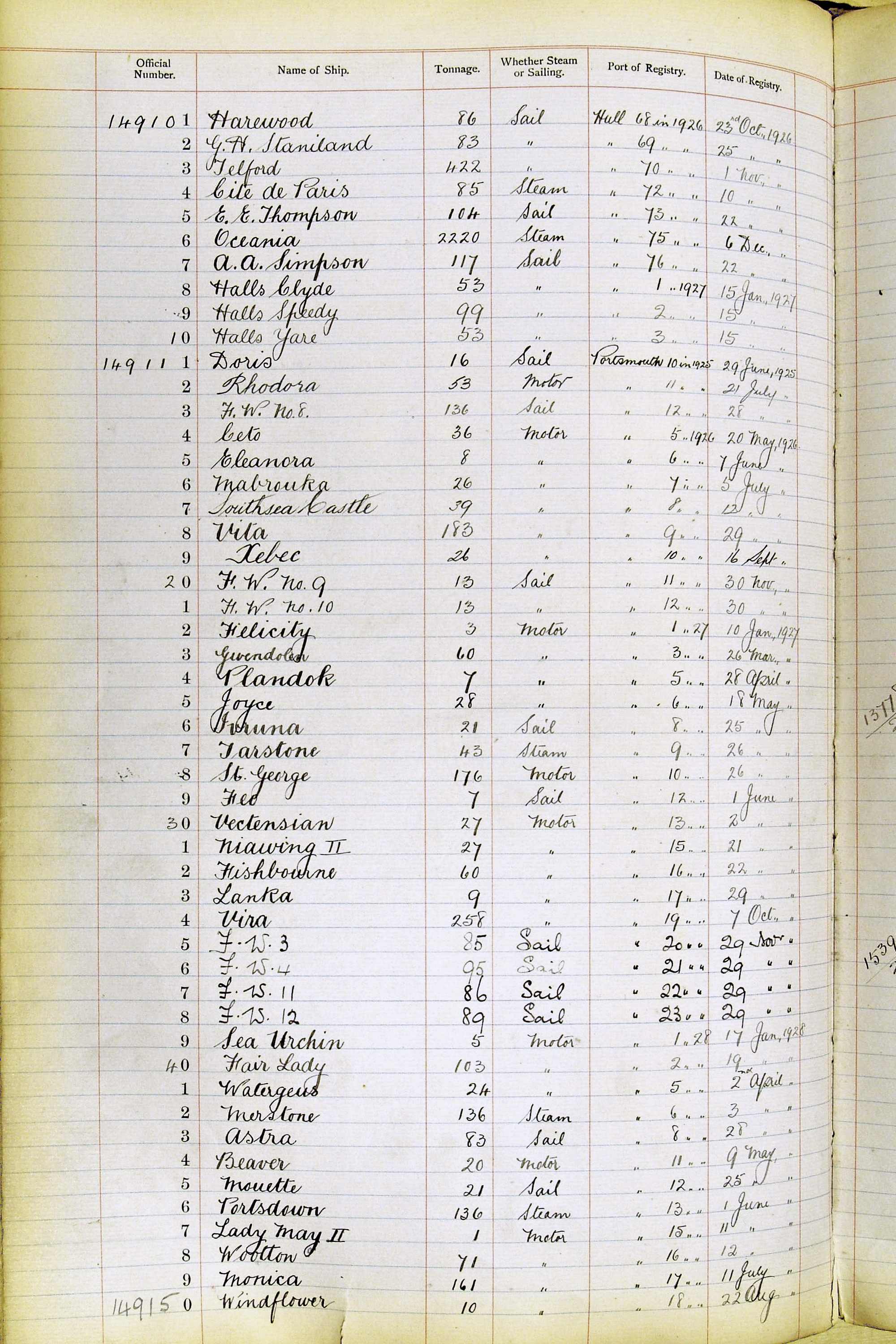 The ship names recorded are those that the ships carried at the time that their official numbers were allocated - changes are sometimes noted, but the best source for changes of name are the shipping registers for the port, or alternatively the Mercantile Navy List.