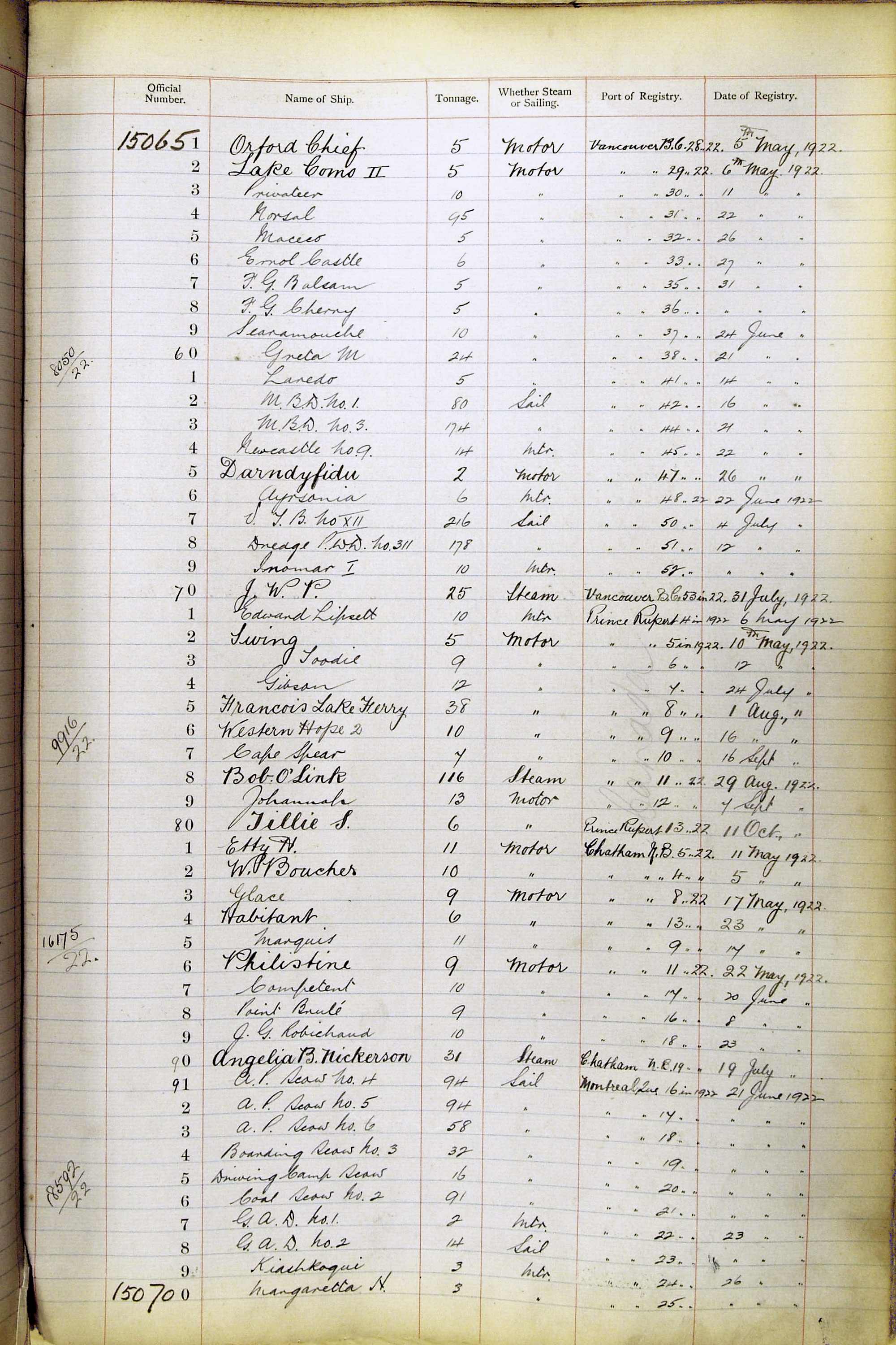 The ship names recorded are those that the ships carried at the time that their official numbers were allocated - changes are sometimes noted, but the best source for changes of name are the shipping registers for the port, or alternatively the Mercantile Navy List.